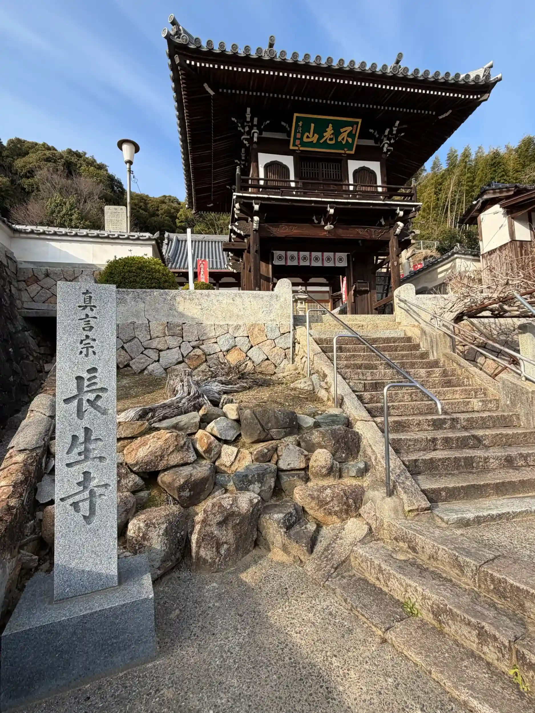 不老山 長生寺(ちょうせいじ, 真言宗 醍醐派, 1587年) 山門, 本堂, 観音堂, 大師堂, 小早川隆景が建立