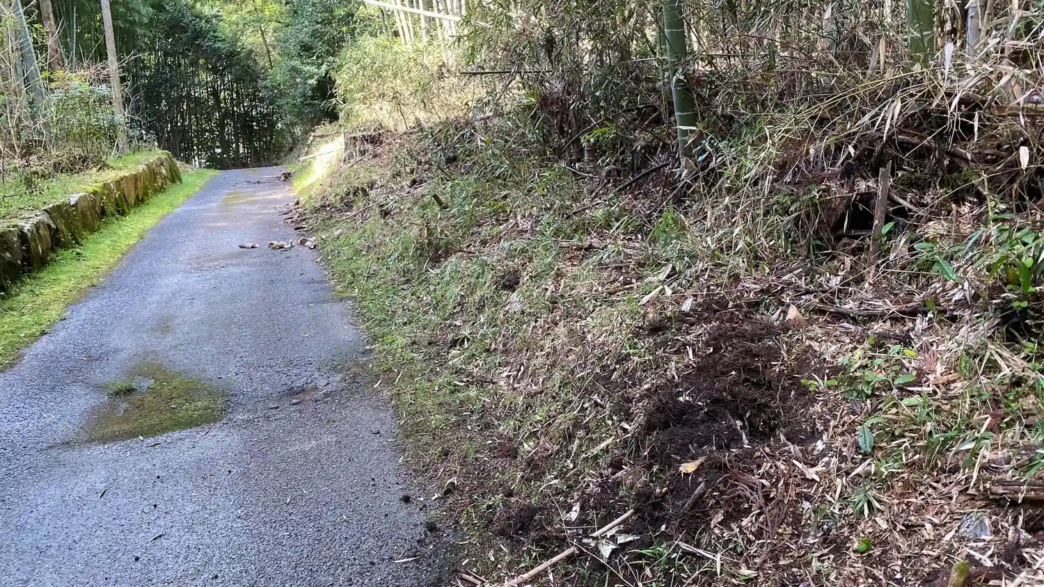 参道で、夜中に獣たちが筍パーティーをしていたようです。