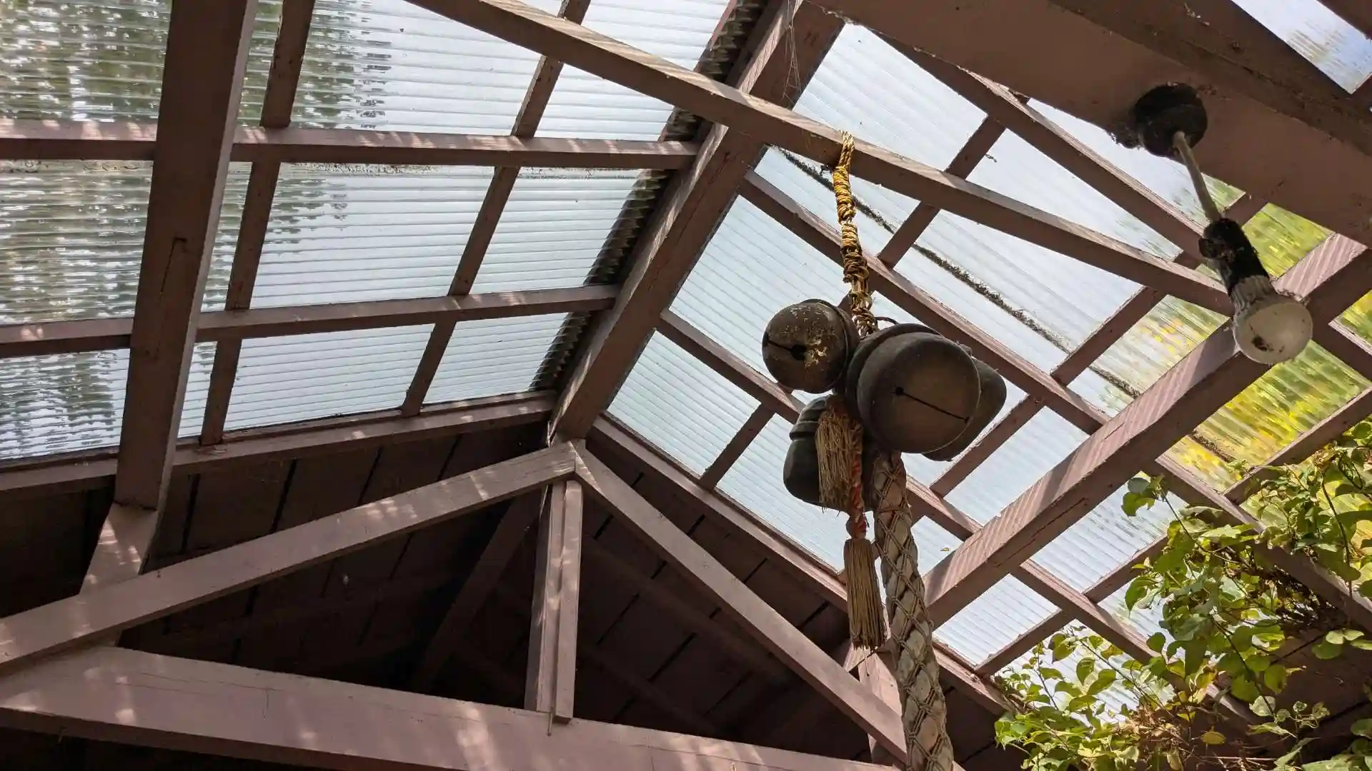 人気の無い小さな神社ですが境内は綺麗でした。社殿を囲う屋根が風でギシギシいってました。