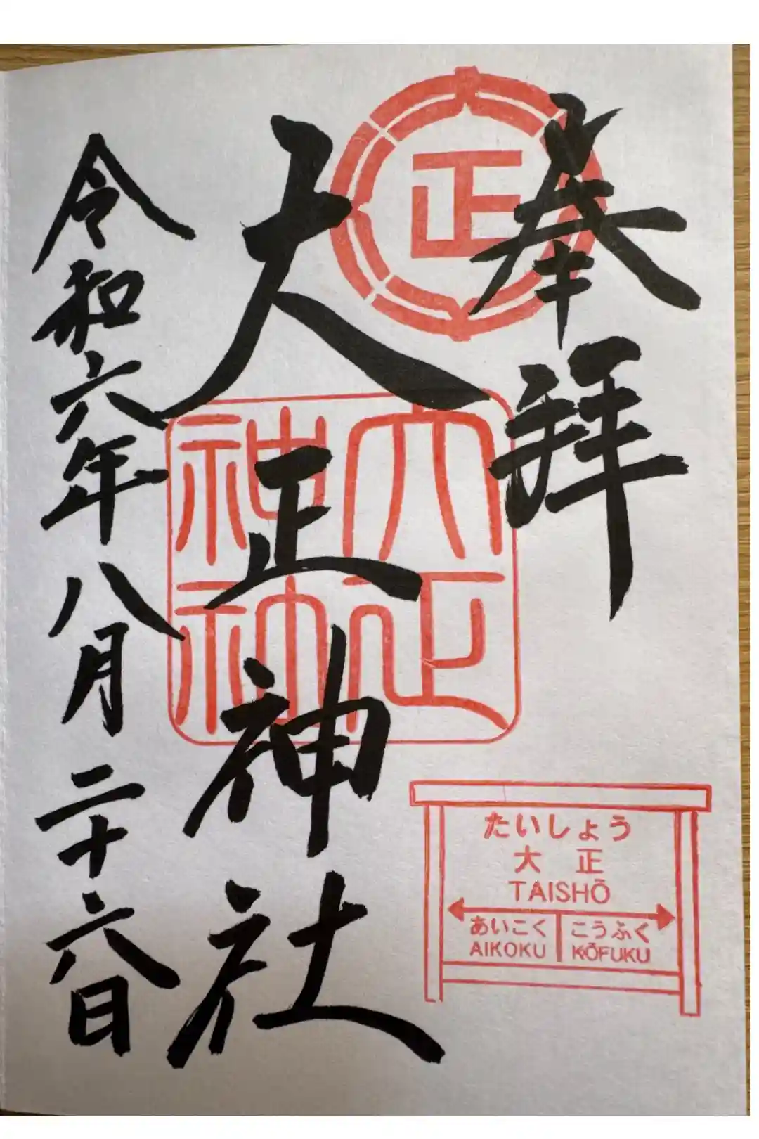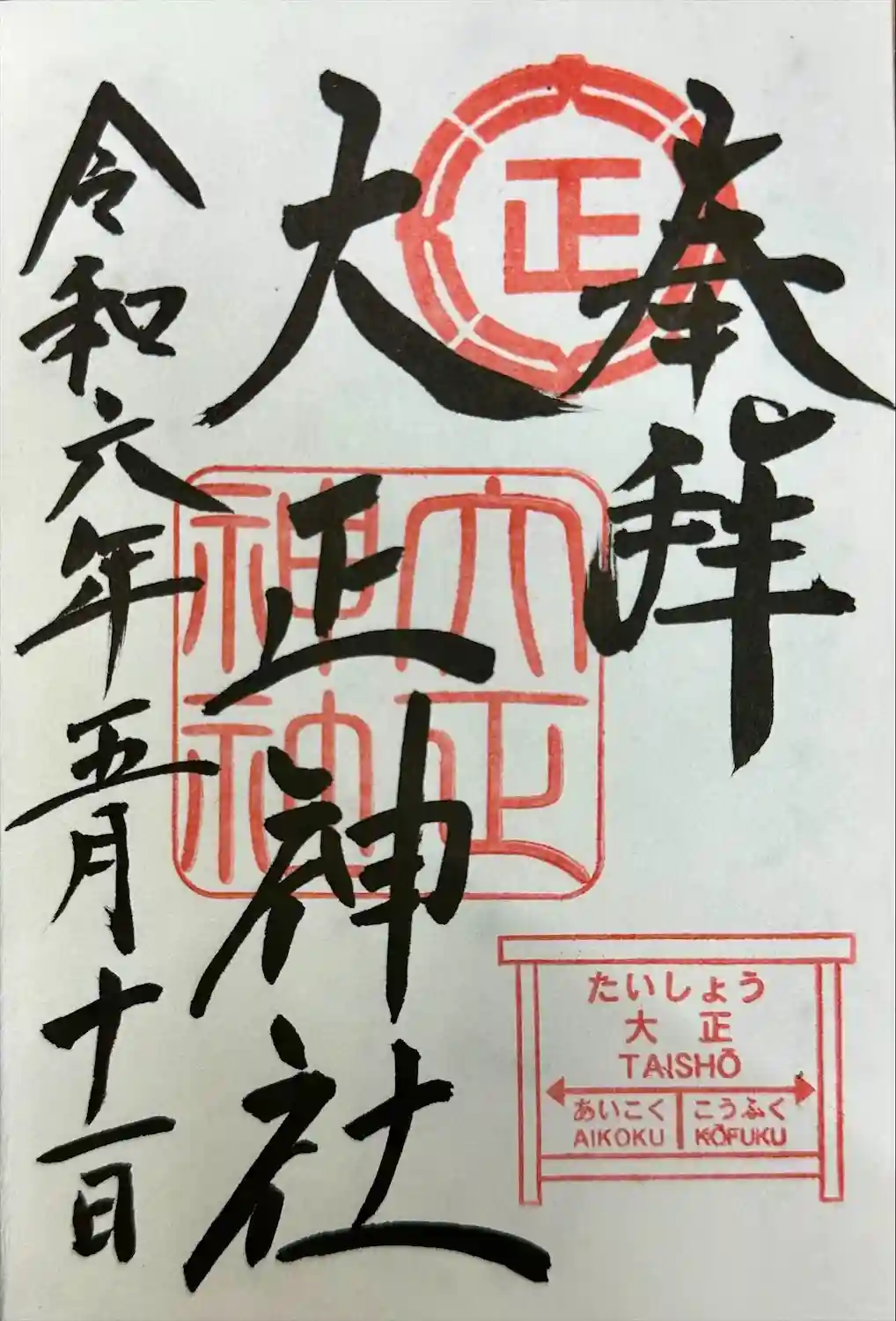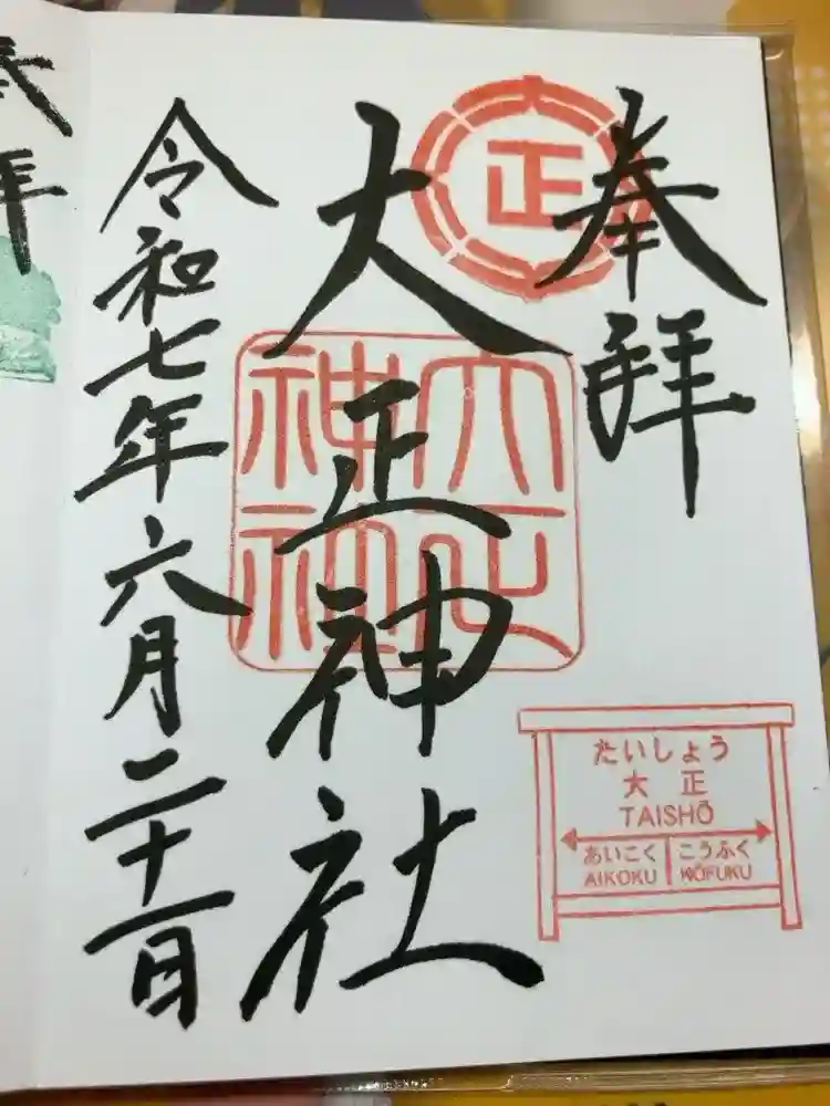 大正神社の御朱印・御朱印帳