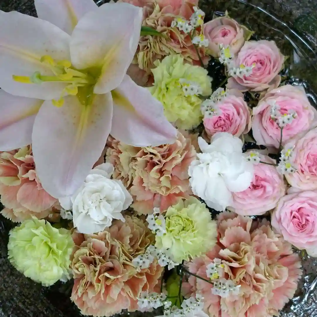 尚、撤去後に状態の良いお花については、水鉢に移し変えて
