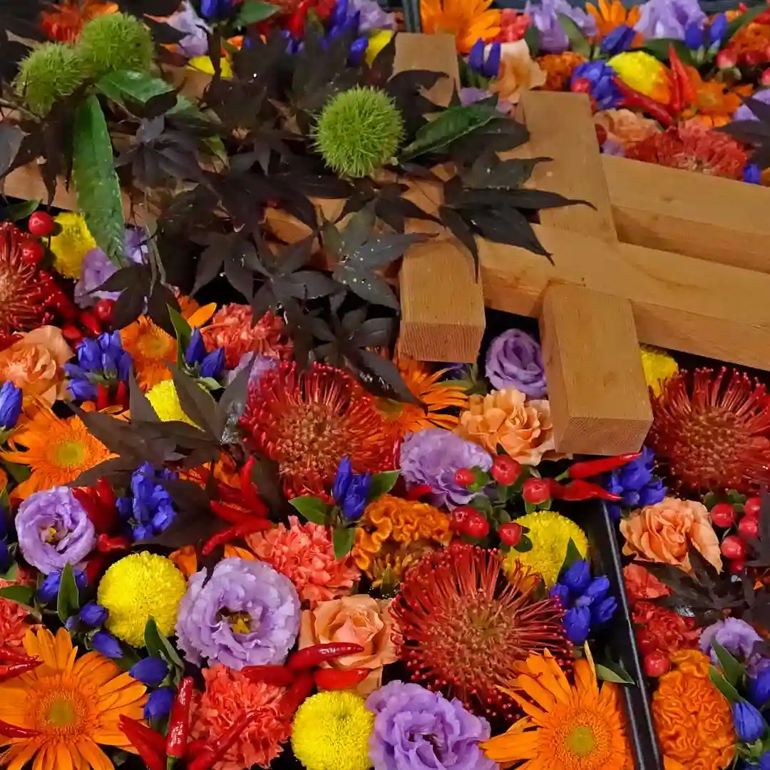 今年最後の花手水です。飾り付けを終えました。