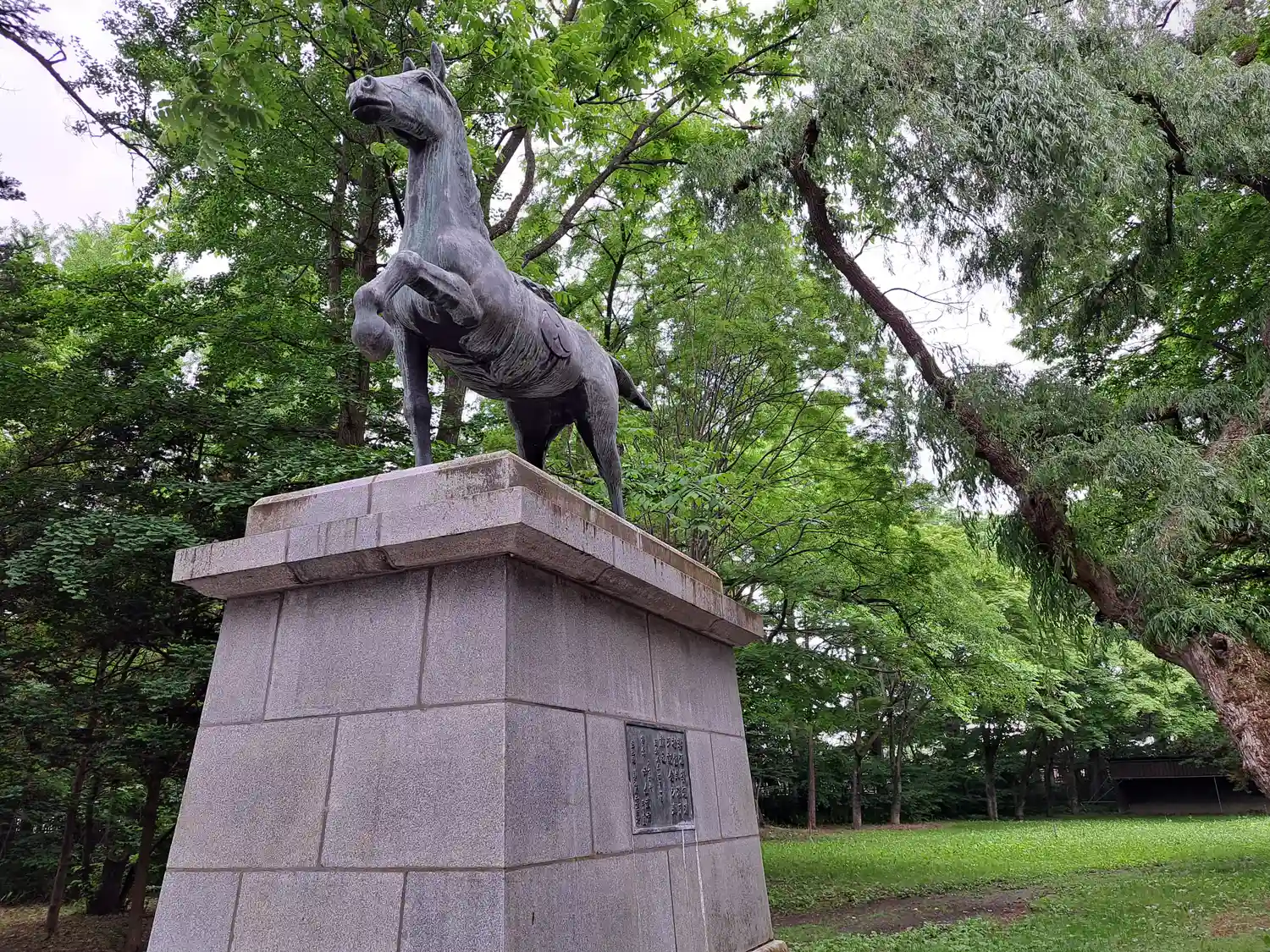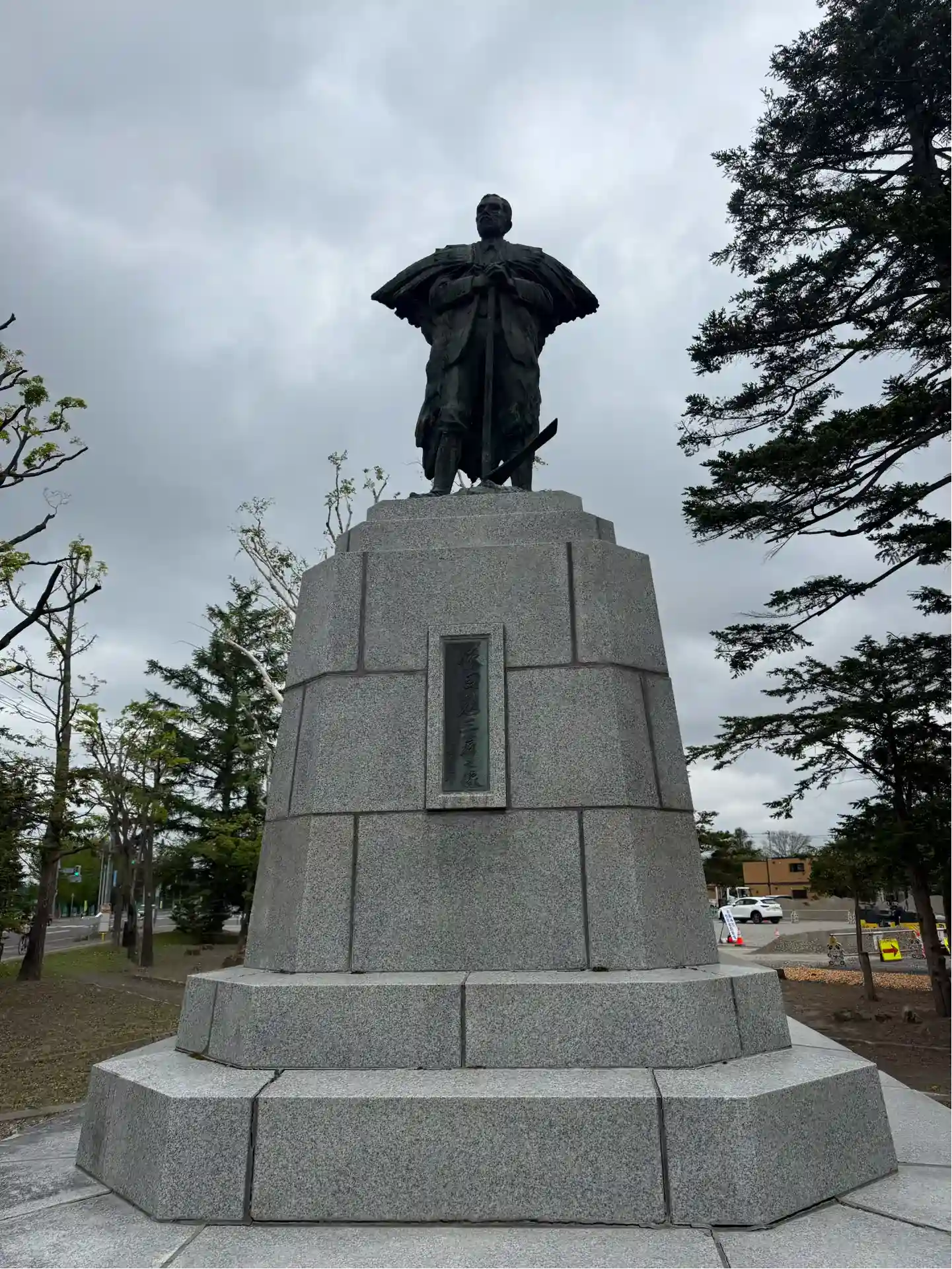 道路を挟んて向かいの中島公園にある帯広を開拓した依田勉三像