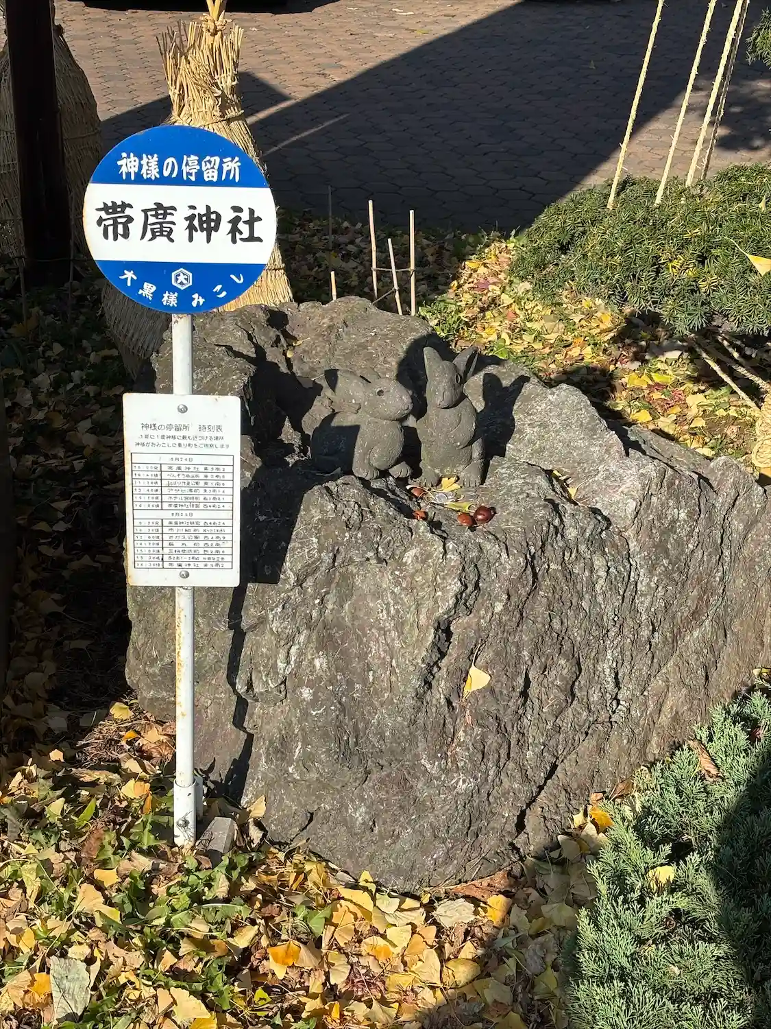 社号標の横にいるウサギさんに挨拶😊