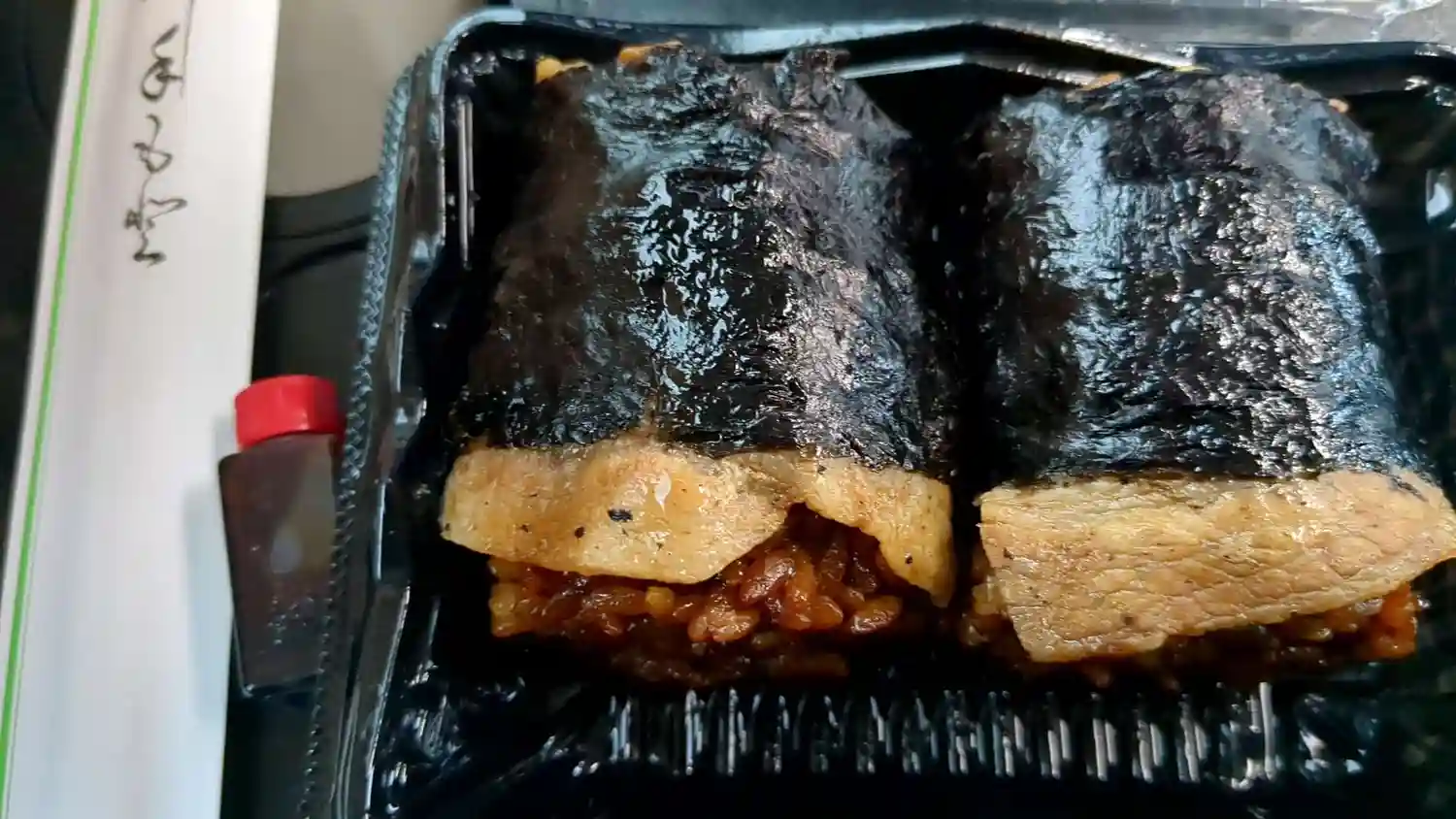 お昼ご飯はバスの中で帯広駅構内のぶた八さんの豚丼おにぎり