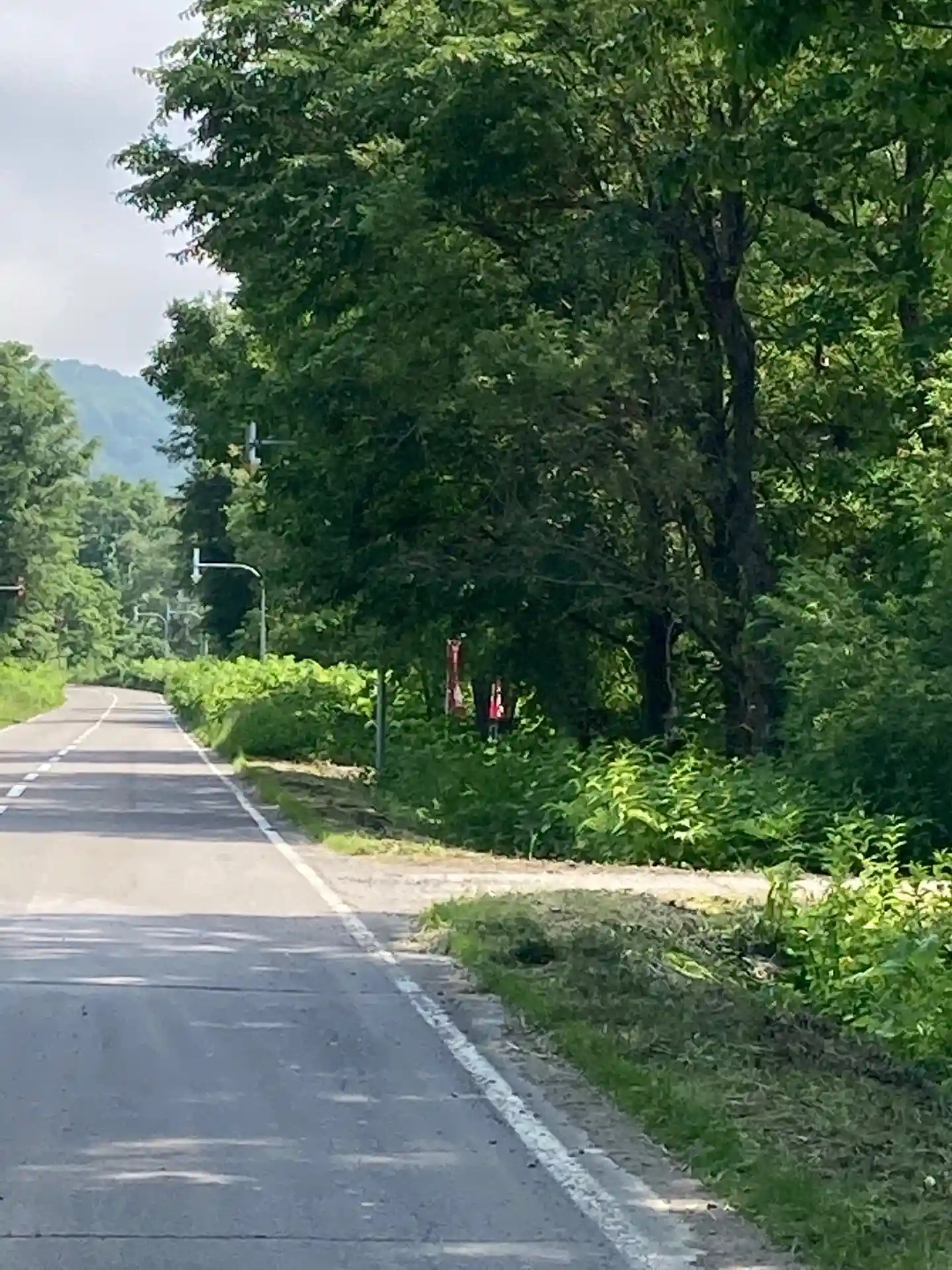 国道236号線から道道55号線をずっと走って行くと、大國神社があります。赤い旗が目印です。