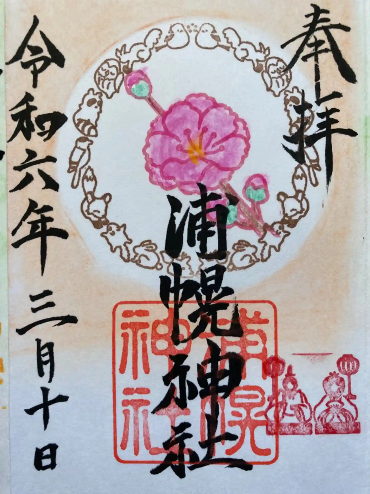浦幌神社月毎の限定御朱印の三月分。