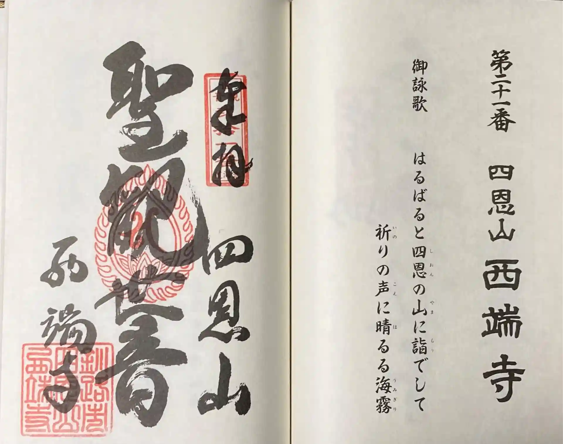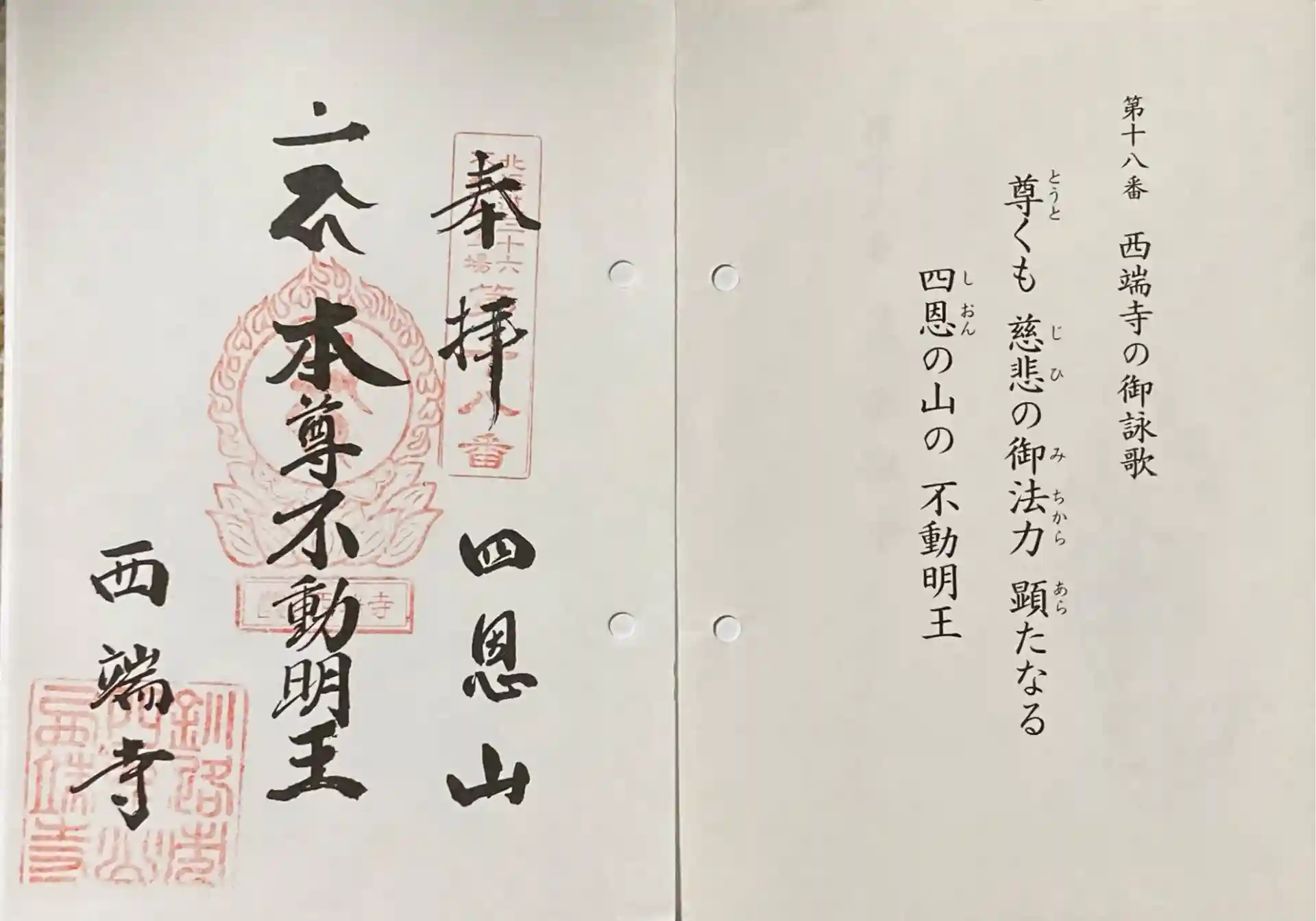 四恩山西端寺の専用納経帳に御朱印いただきました。