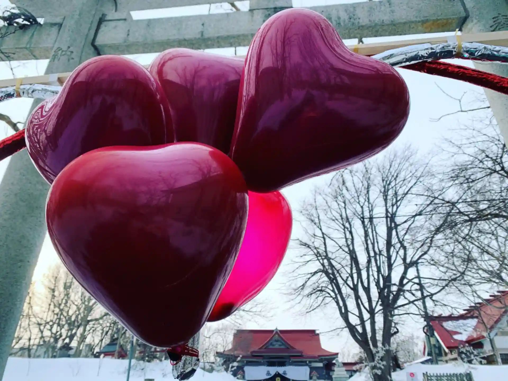 ハート型の良縁の輪にライトをつけました。今晩限定でライトアップします✨