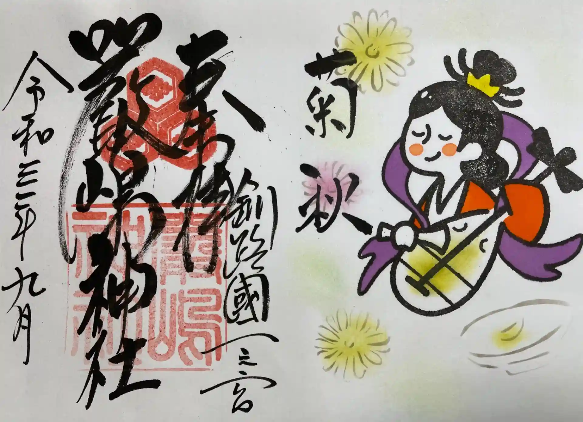 9/1〜30限定でこちらの御朱印を頒布いたします。菊秋は9月の異名です。