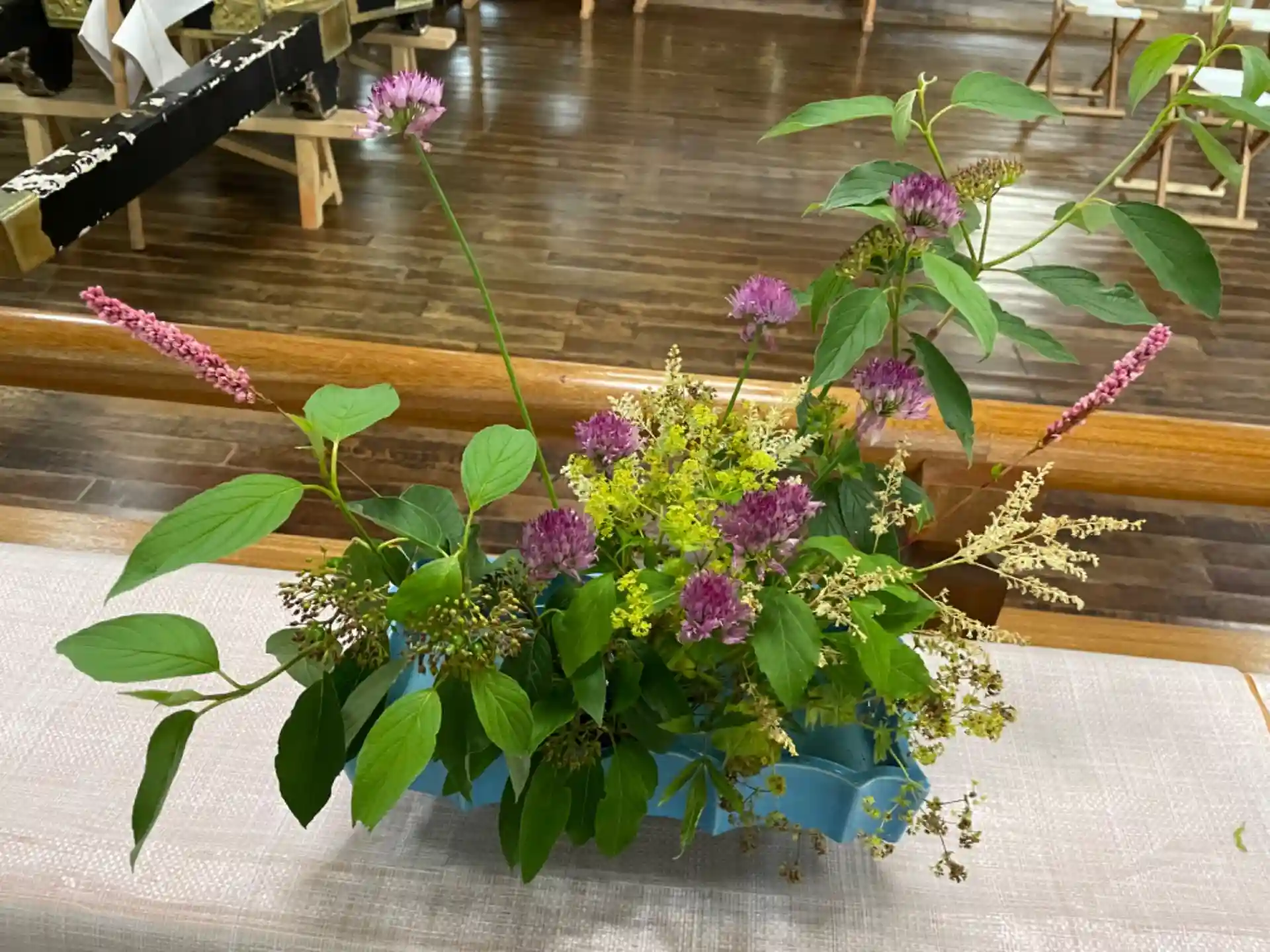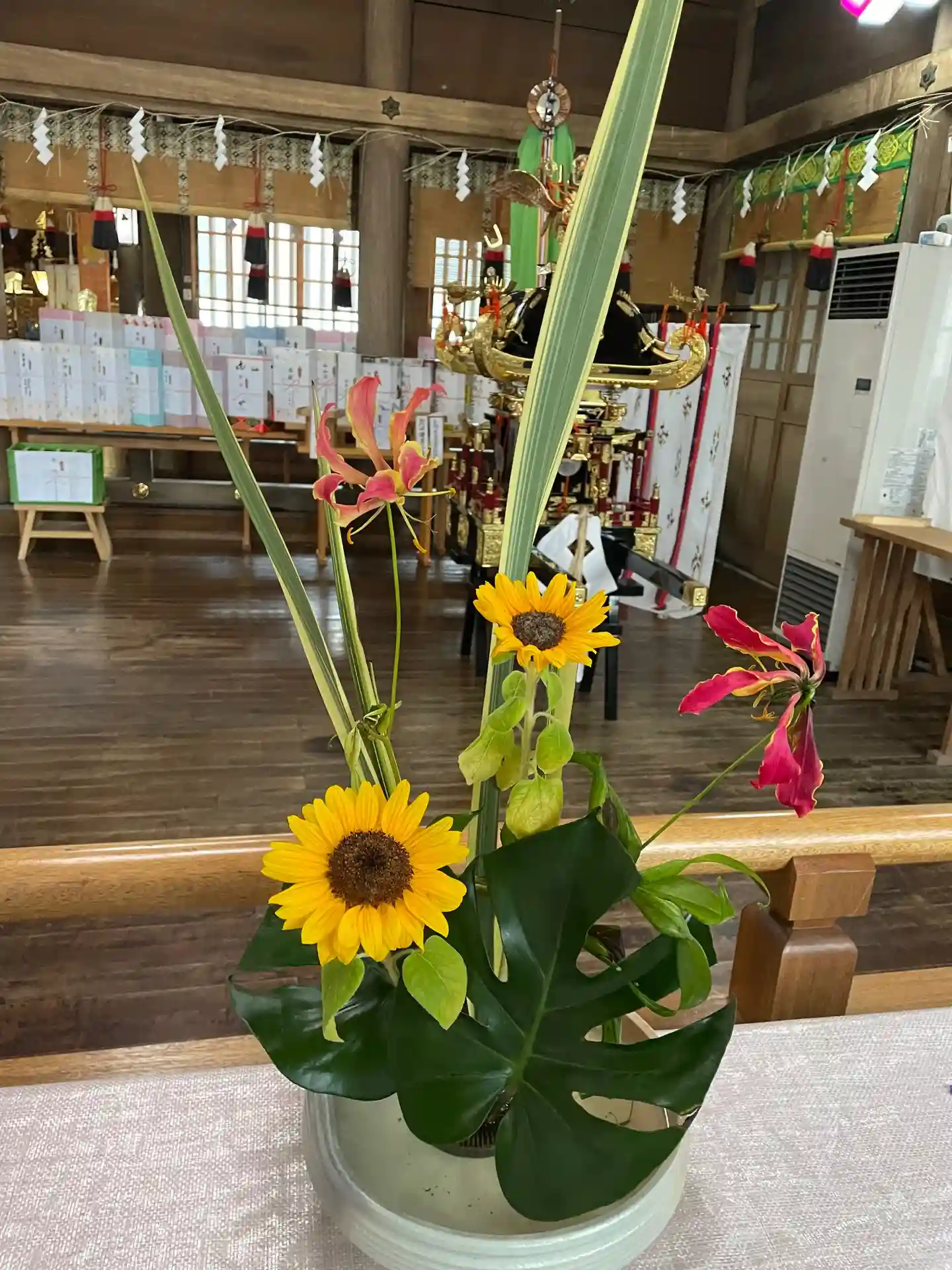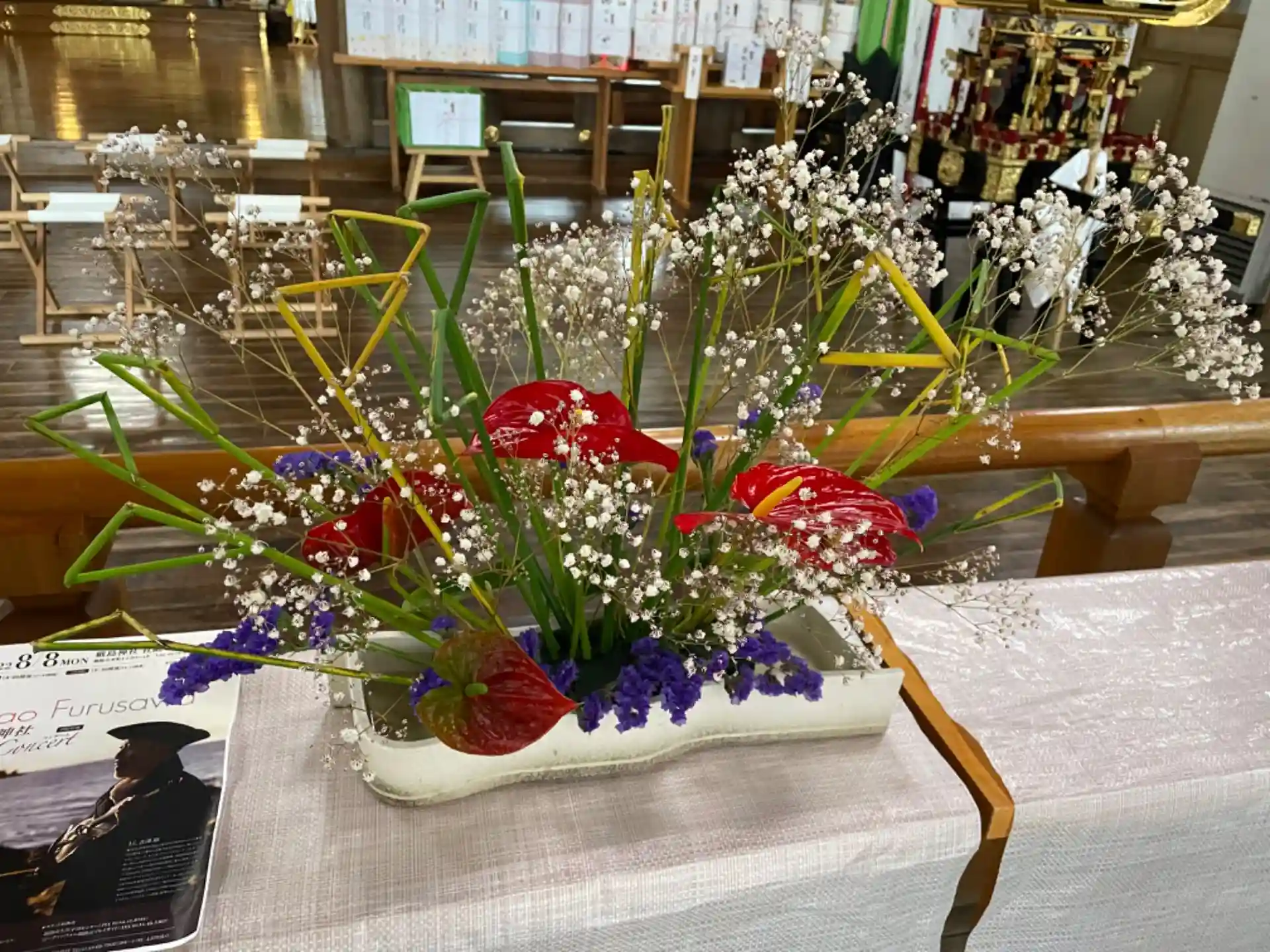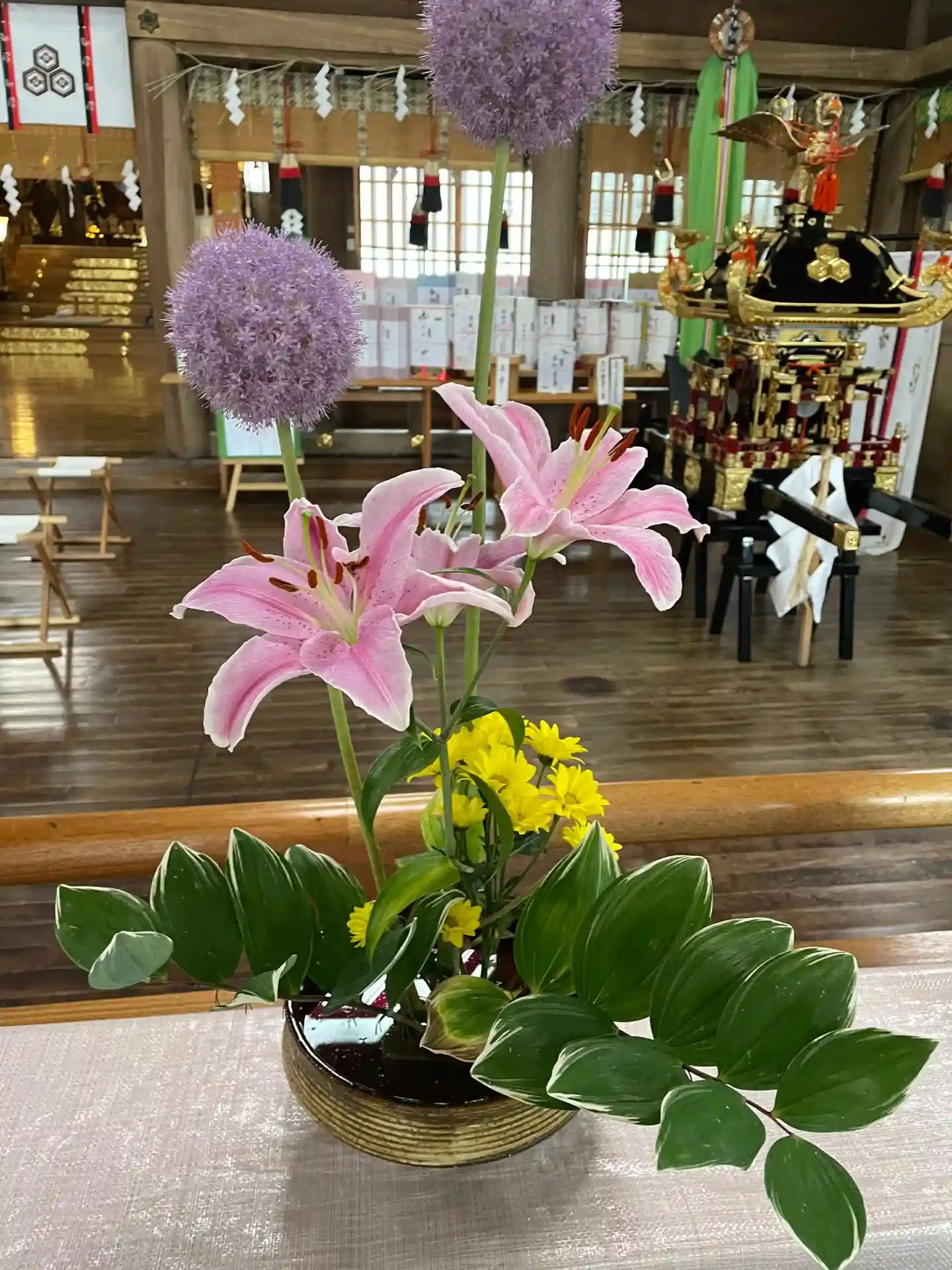 拝殿の中には生花が飾られていました