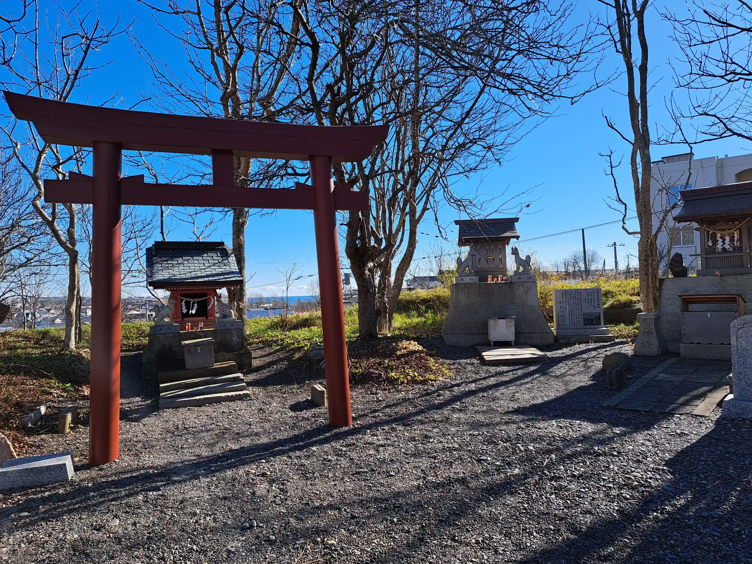 葉が全て落ちると、あぁ冬がくるなぁと思うのです。米町公園バス停側の鳥居。