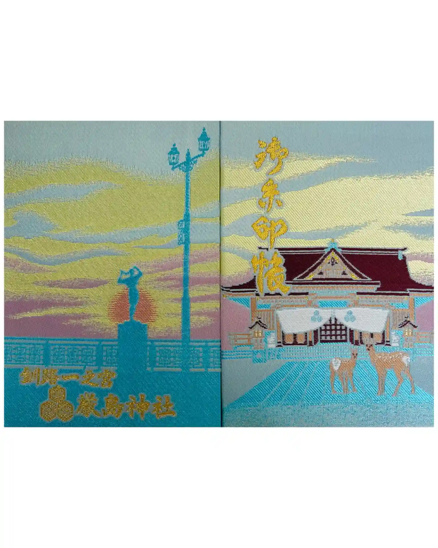 当神社のオリジナル御朱印帳はこのように時々境内にやってくる神使の鹿と本殿を描いた図柄になっています。