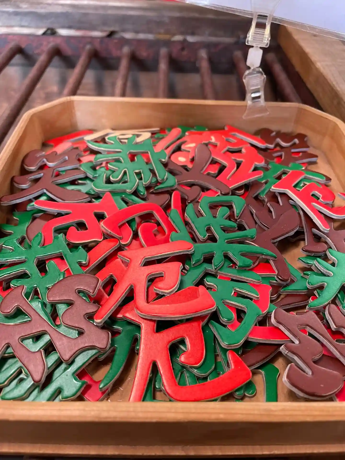 絵馬についている文字を折敷の上に落としていただく一風変わった絵馬。前から出しているものですが最近お受けになられる方が多いです。