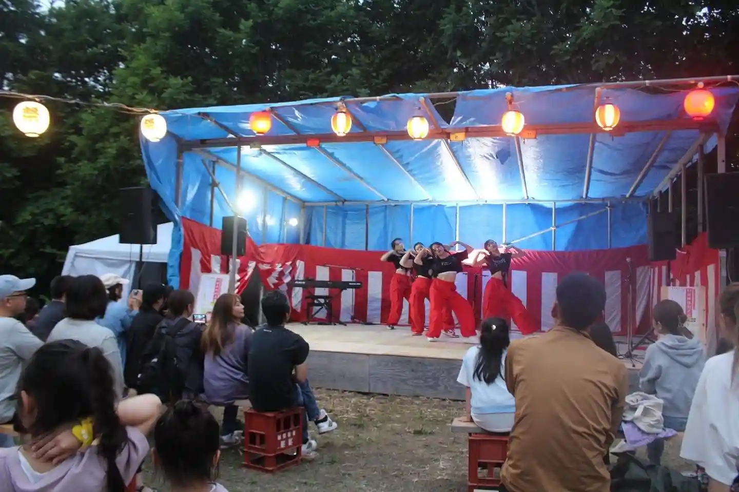 遠矢神楽舞保存会様の獅子舞奉納、北海道くしろ蝦夷太鼓保存会様の太鼓奉納、ECSTATIC様のダンスステージ、マジシャンWandi様のマジックショー、シンガーソングライター東潤子様の生ライブ、最後に福餅まきと盛り上がった境内でした。また、キッチンカーや露店も複数出店いただき、目でも舌でも楽しいお祭りとなりました。