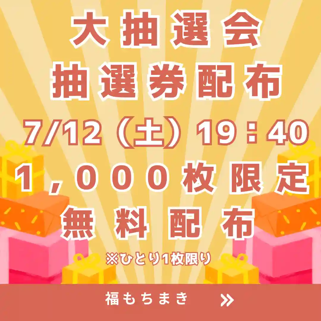 大抽選会は商品券、食事券、大浴場入浴券、扇風機などなんと170個以上!無料の抽選券は19:40頃から1,000枚限定配布となります。