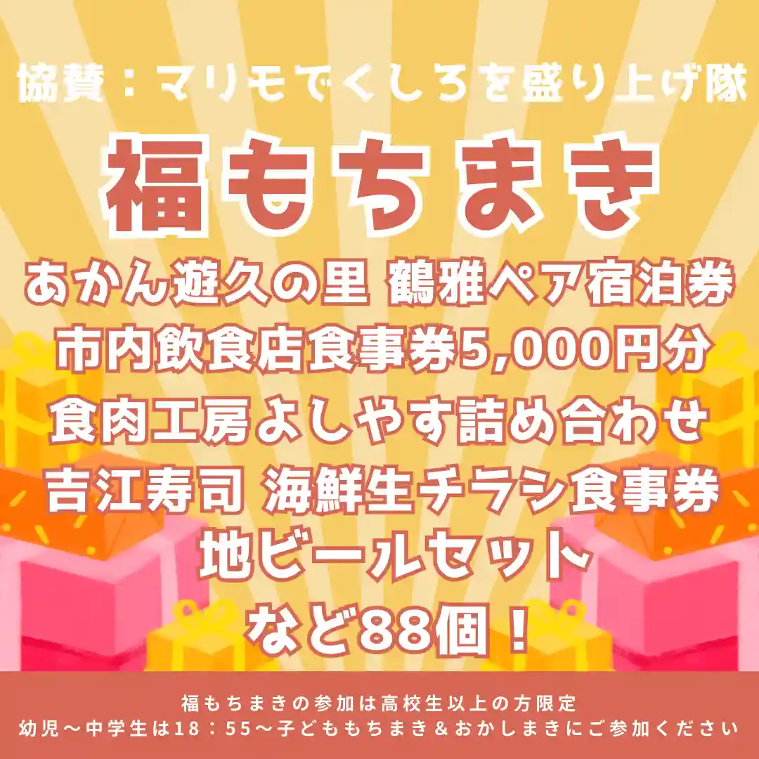 福もちまきはまずは中学生以下のお子様対象に「子どももちまき&お菓子まき」🍬その後、高校生以上を対象に当たり券付きの福もちまきを開催します!
