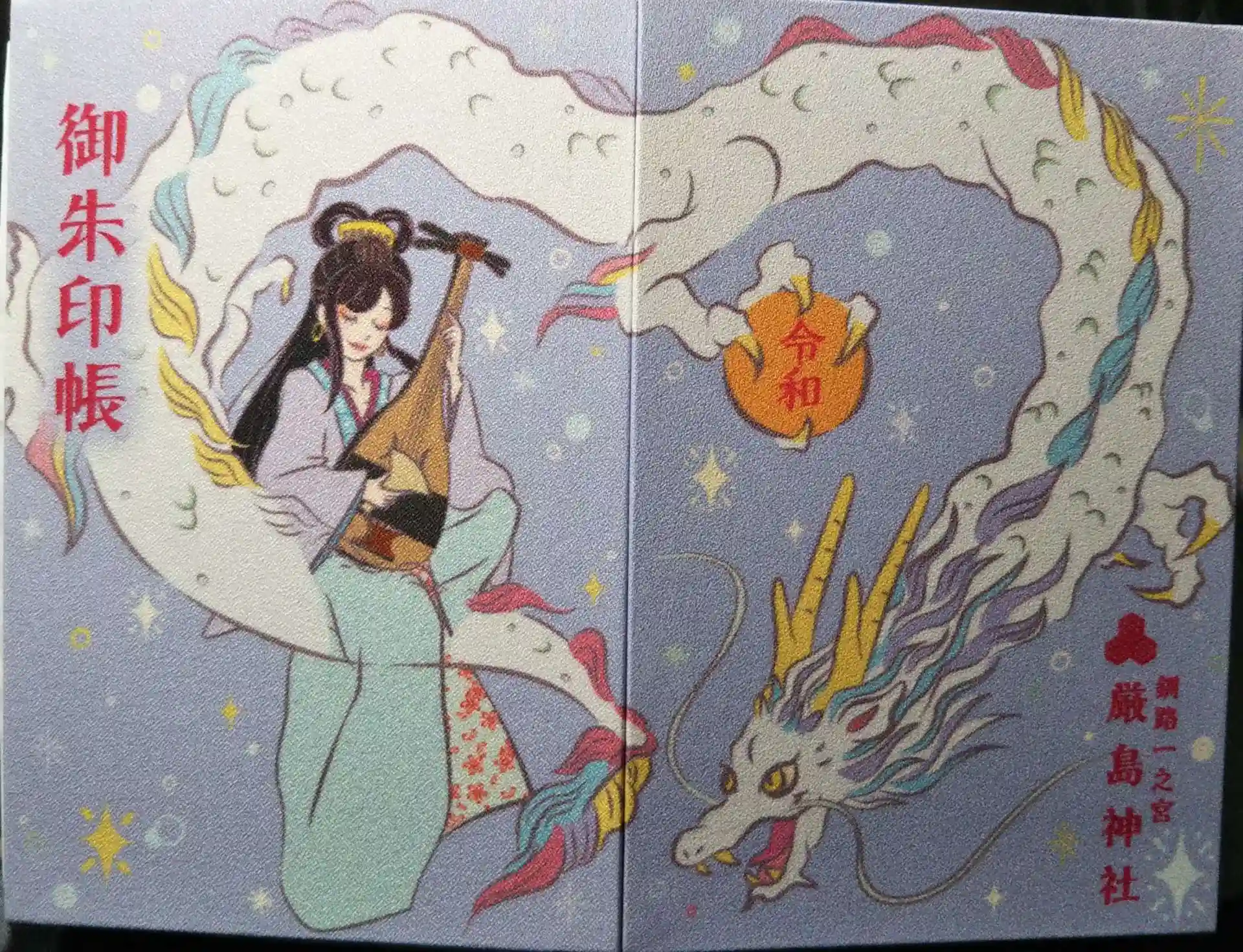 オリジナル御朱印帳は大判です。厳島神社専用にと頂きました。1ページ目に釧路國の文字と石川啄木歌印入りです。御朱印帳は郵送対応して頂けます❗️