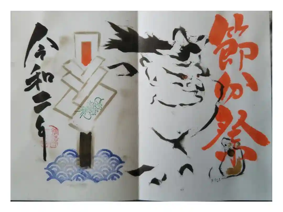 節分祭の御朱印です。鬼とネズミが描かれてます。