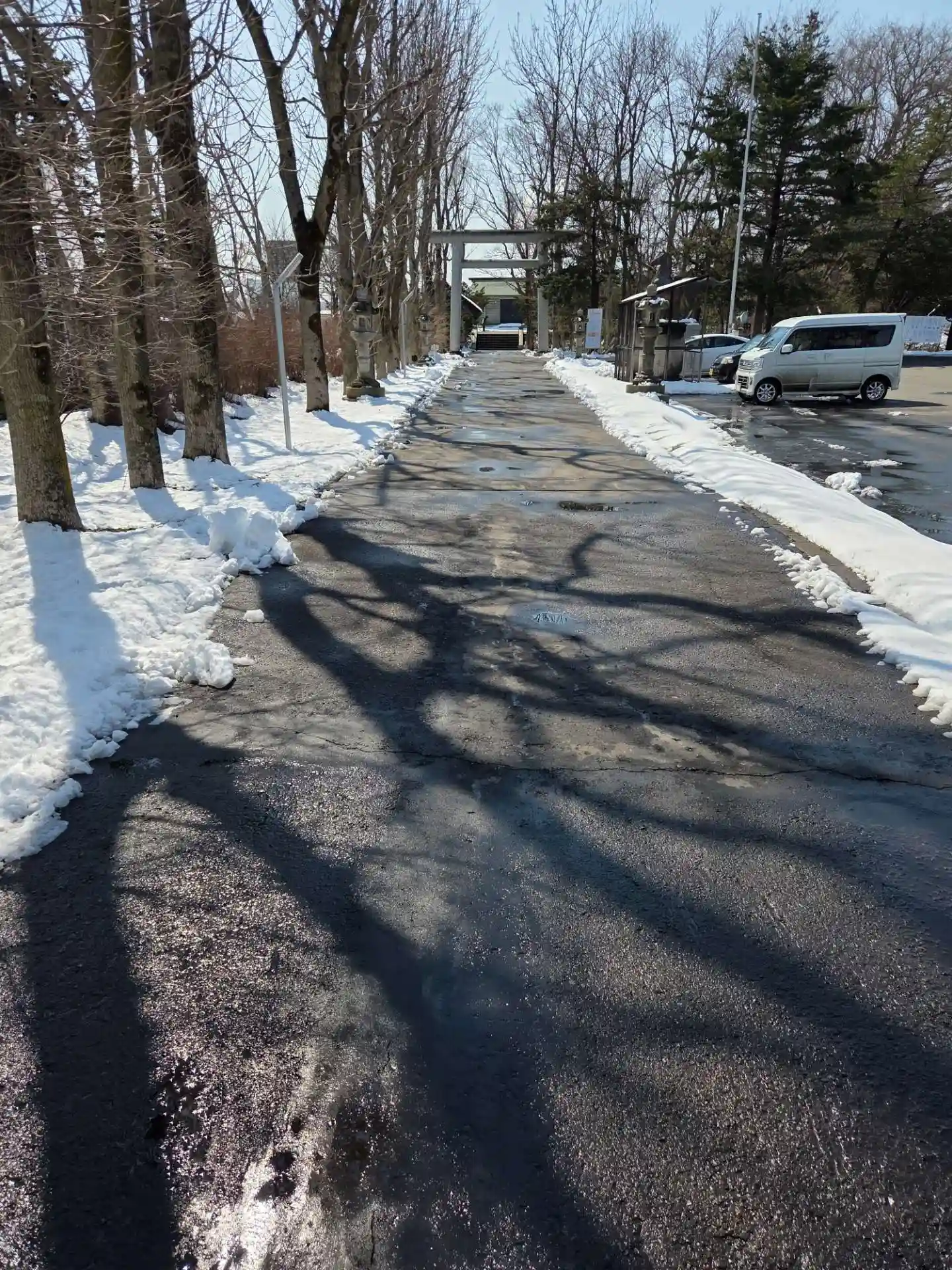 鳥取の方が開拓された地区、思いの他大きな神社でした。昨日降った雪が溶けて建物から雨の如く落ちてきて難儀しました。