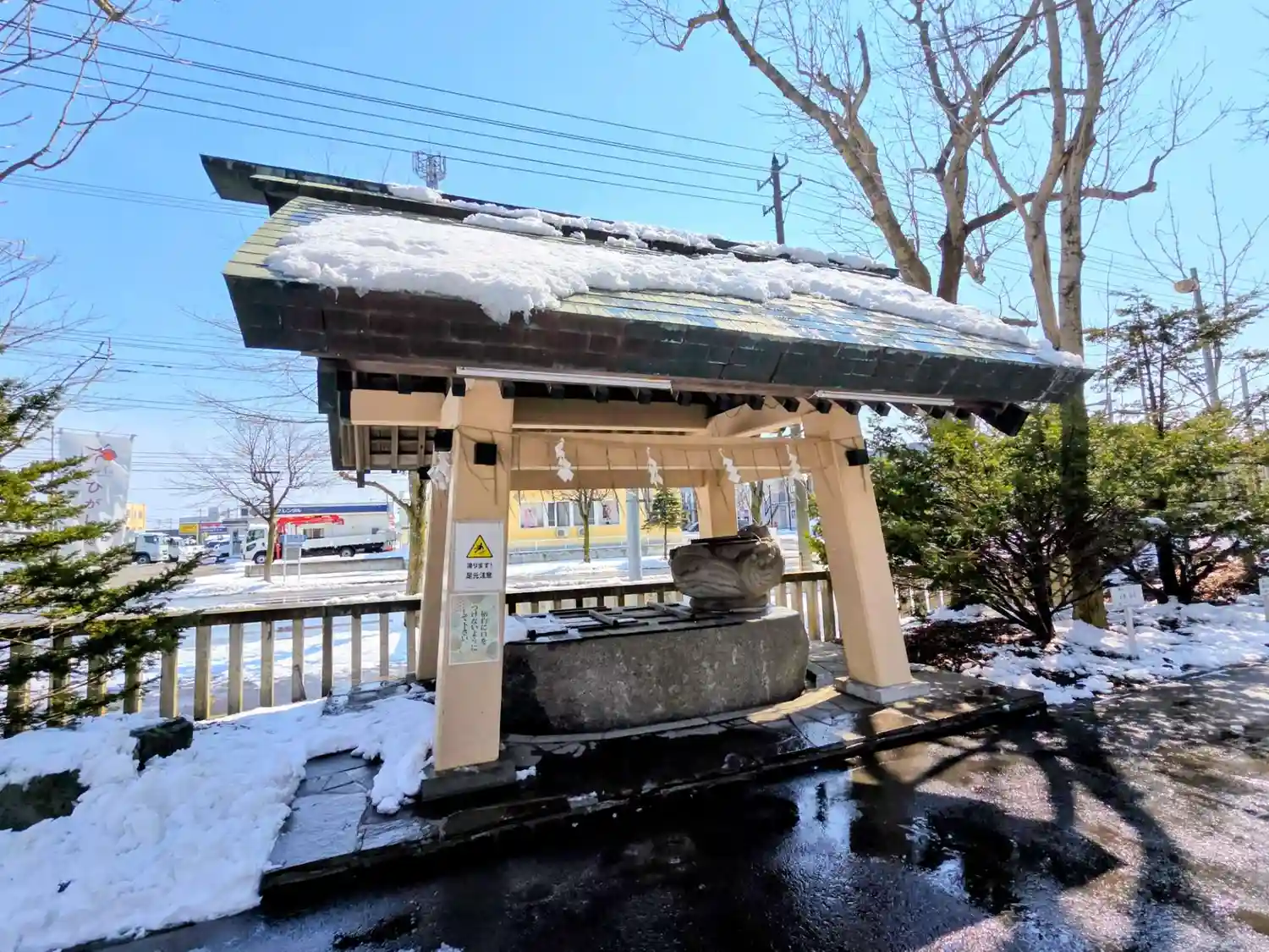 鳥取の方が開拓された地区、思いの他大きな神社でした。昨日降った雪が溶けて建物から雨の如く落ちてきて…