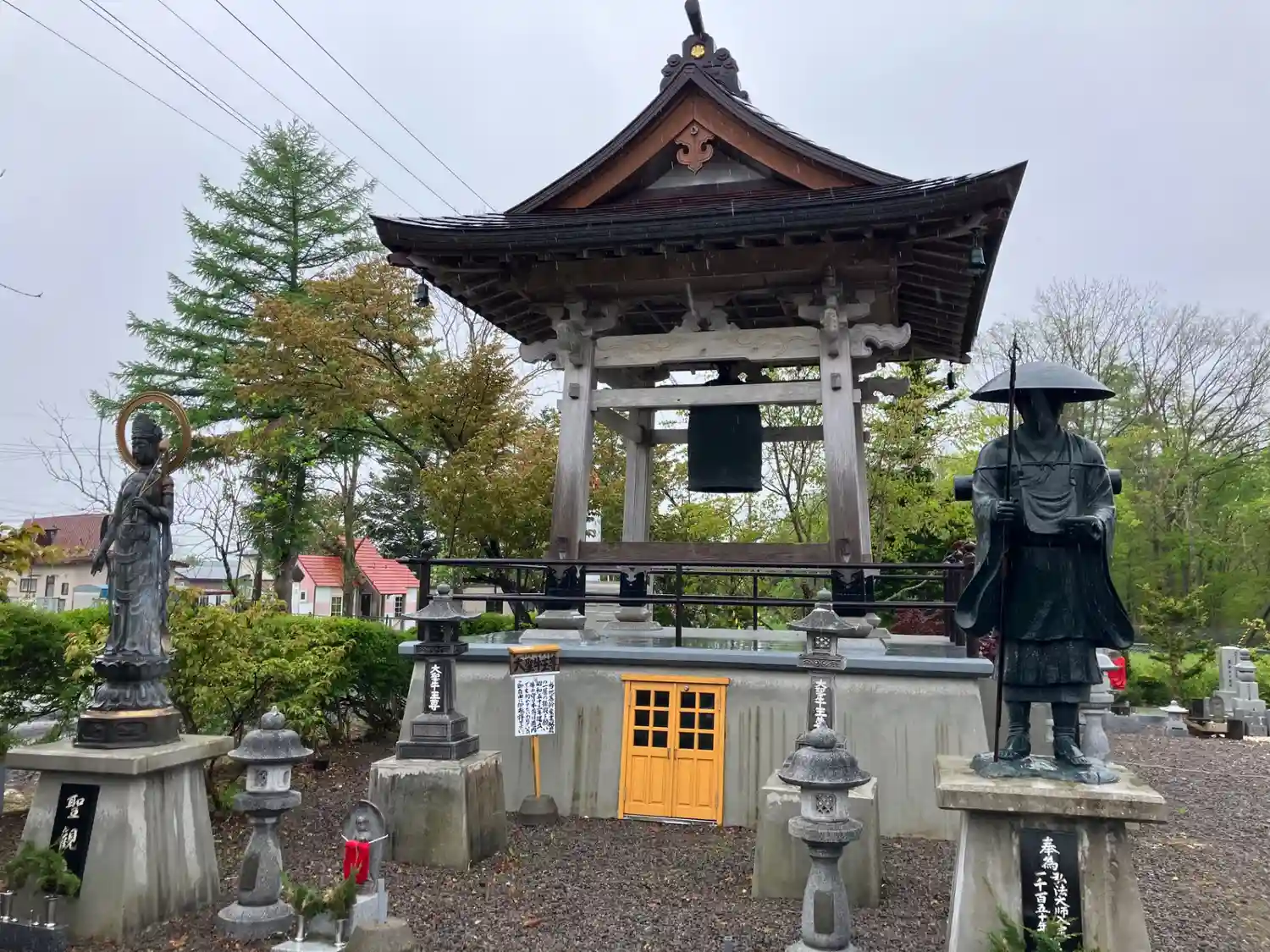 鐘楼堂と手前修行大師尊像。