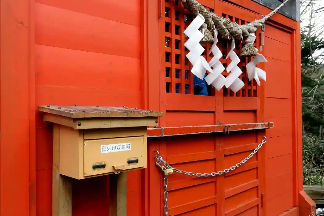 もちろん無人の神社ですので社務所などはないのですが、郵便受のなかに朱肉とスタンプが 入っています。ちなみに私は御朱印帳ではなく事前に買った画用紙に押印させて頂きました