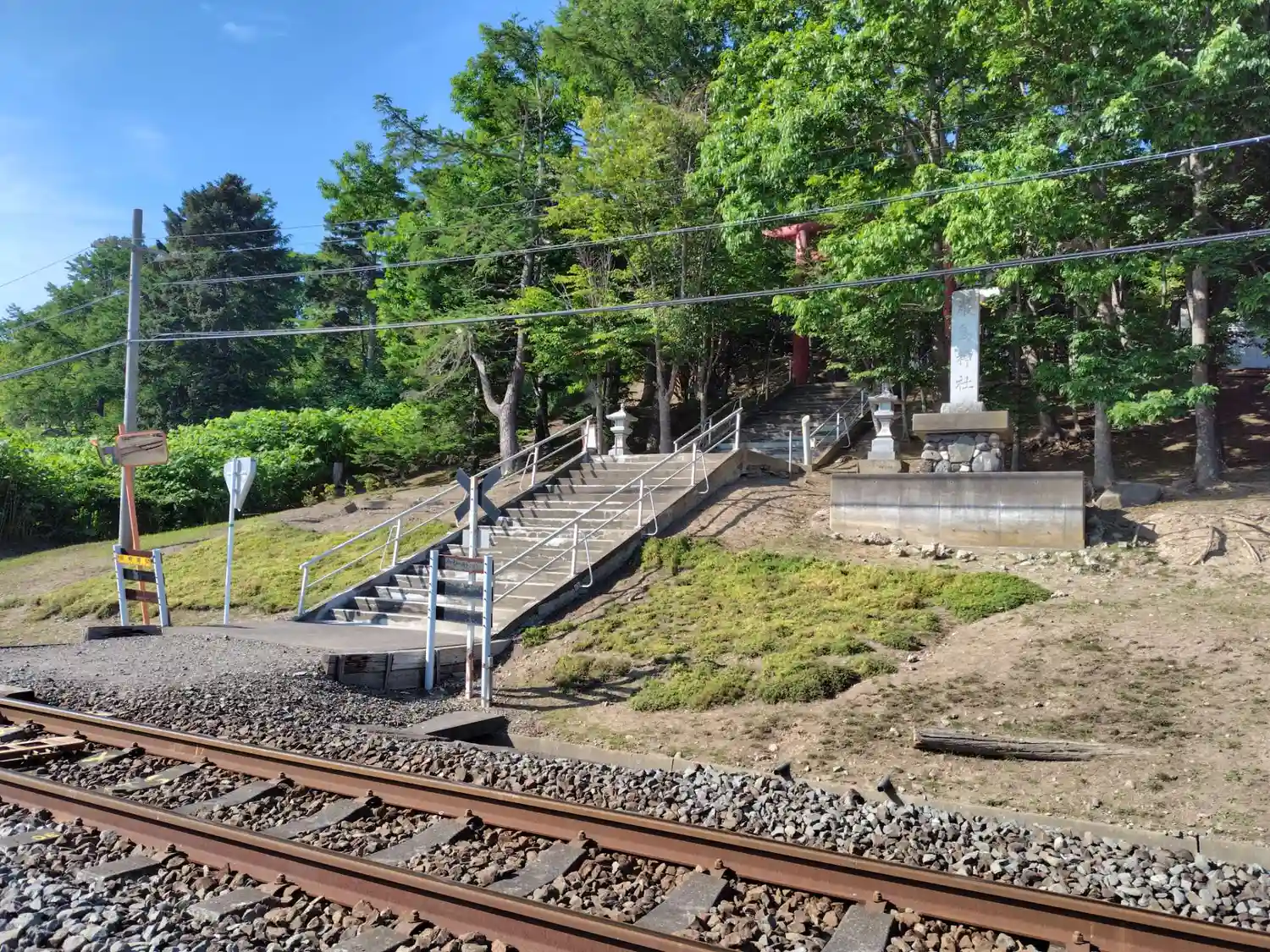 神社参拝には線路…
