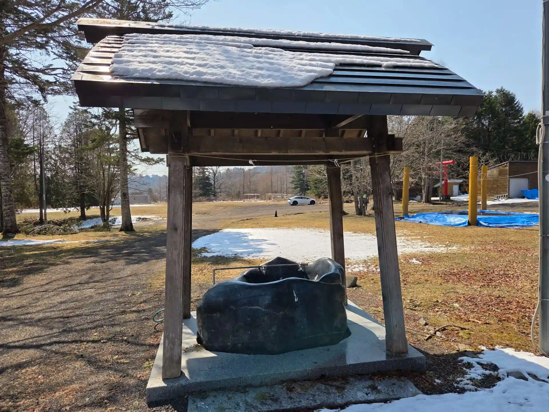 昨年、札幌からの飛行機が悪天候の為、欠航になったので、今回は札幌に行く前に寄りました。行きのフライトで一人が遅れた為出発が遅れ10分の遅延。神社巡りでは分単位にスケジューリングしているのでヒヤヒヤしました。空港からの道中は快適で信号も少なくあっと云う間に到着。昨日降った雪て足元はぬかるみ、拝殿裏に行こうにも雪で阻まれてしまいます。何とか参拝し、社務所でお声掛けして書置きの御朱印を戴きました。