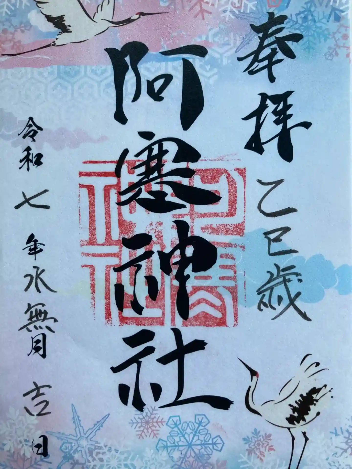 御朱印が鶴と雪の結晶の柄でかわいいです!