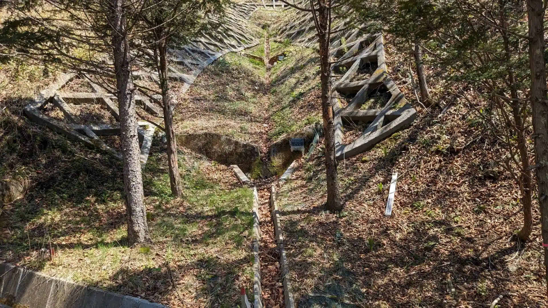 JR別保駅からも近い丘の上にあります。斜面に囲まれていて砂防ダムなどもありました。