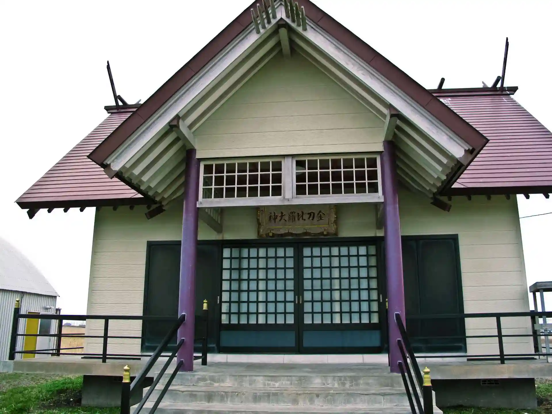 珍しい紫色の社殿です。本当に見たことがない色。