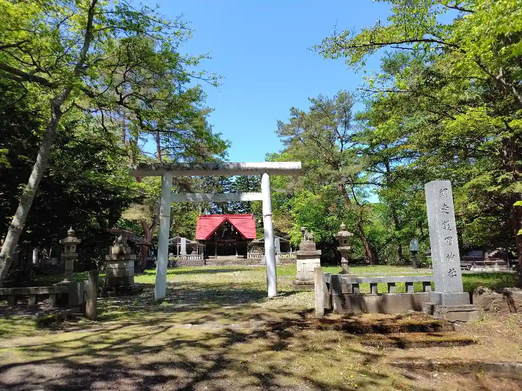 網走護国神社の社号標と鳥居。