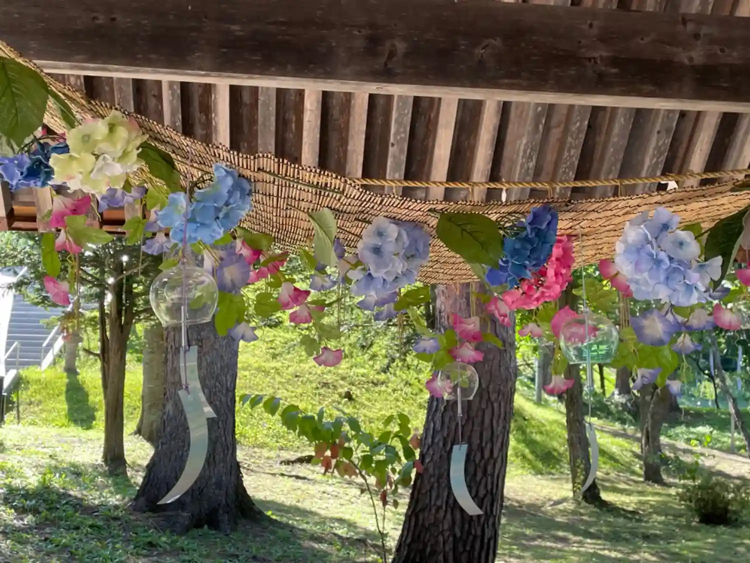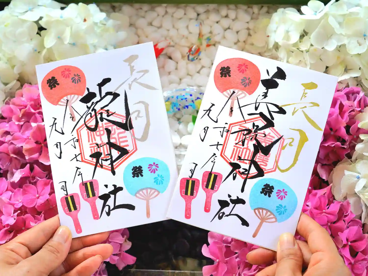 夏詣の花や扇子などの飾りがとても綺麗でした…