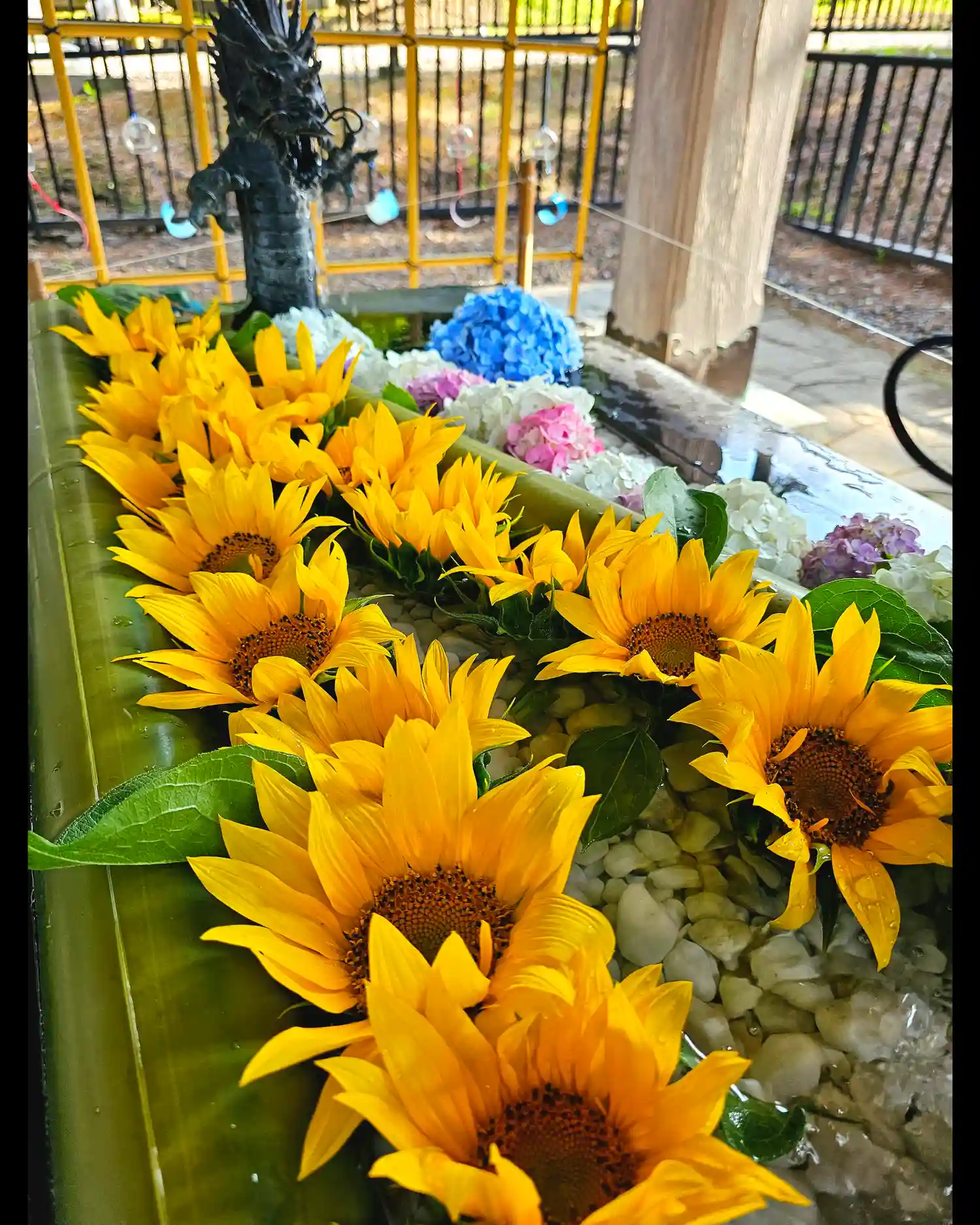 先日奉納頂いた向日葵を手水舎に🌻