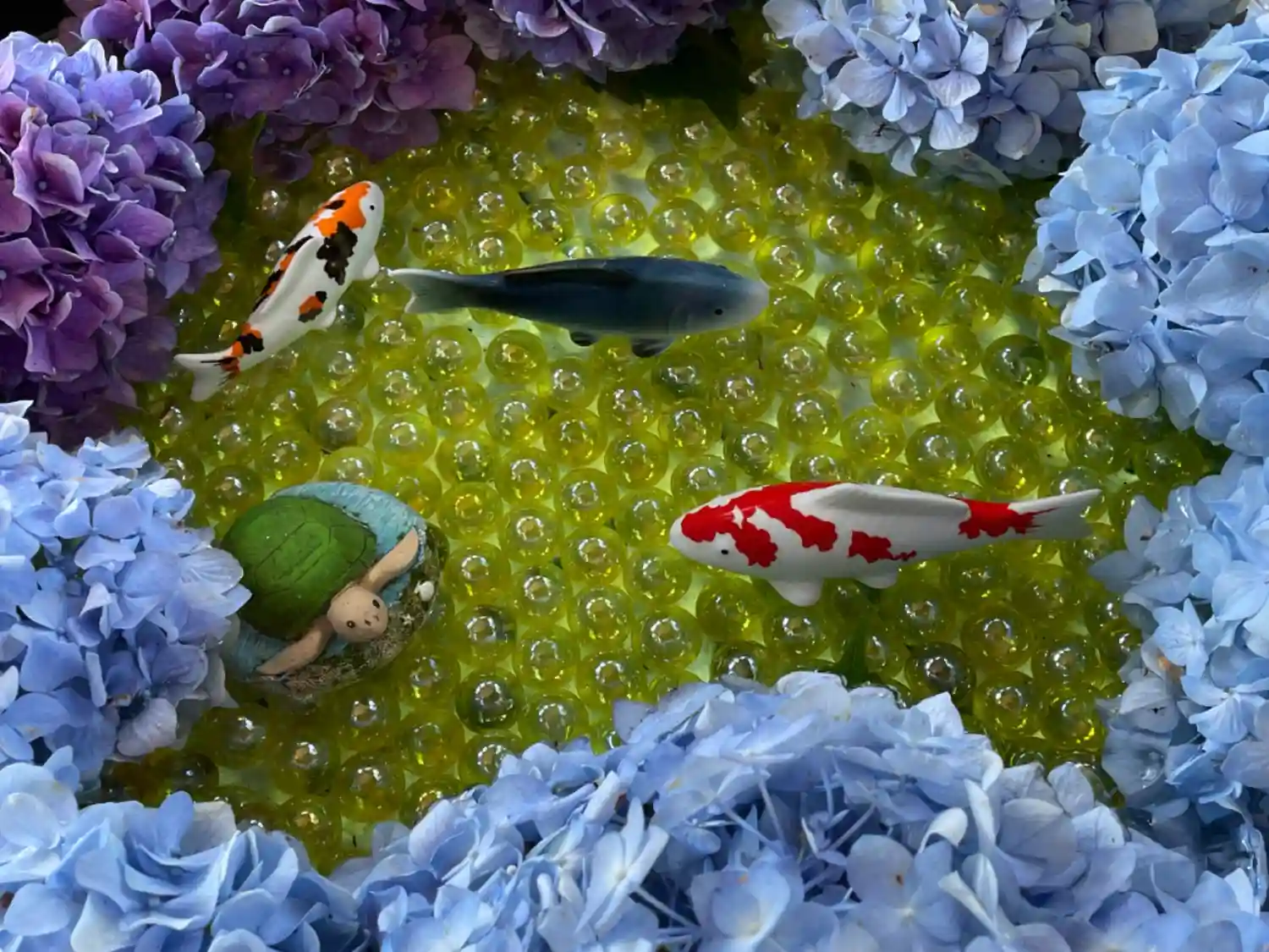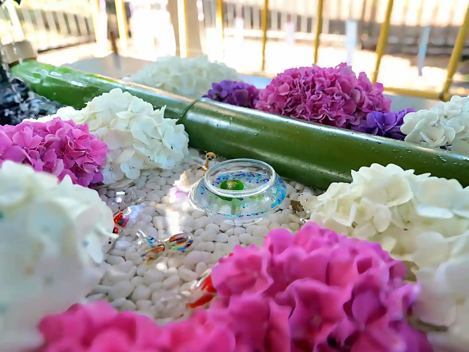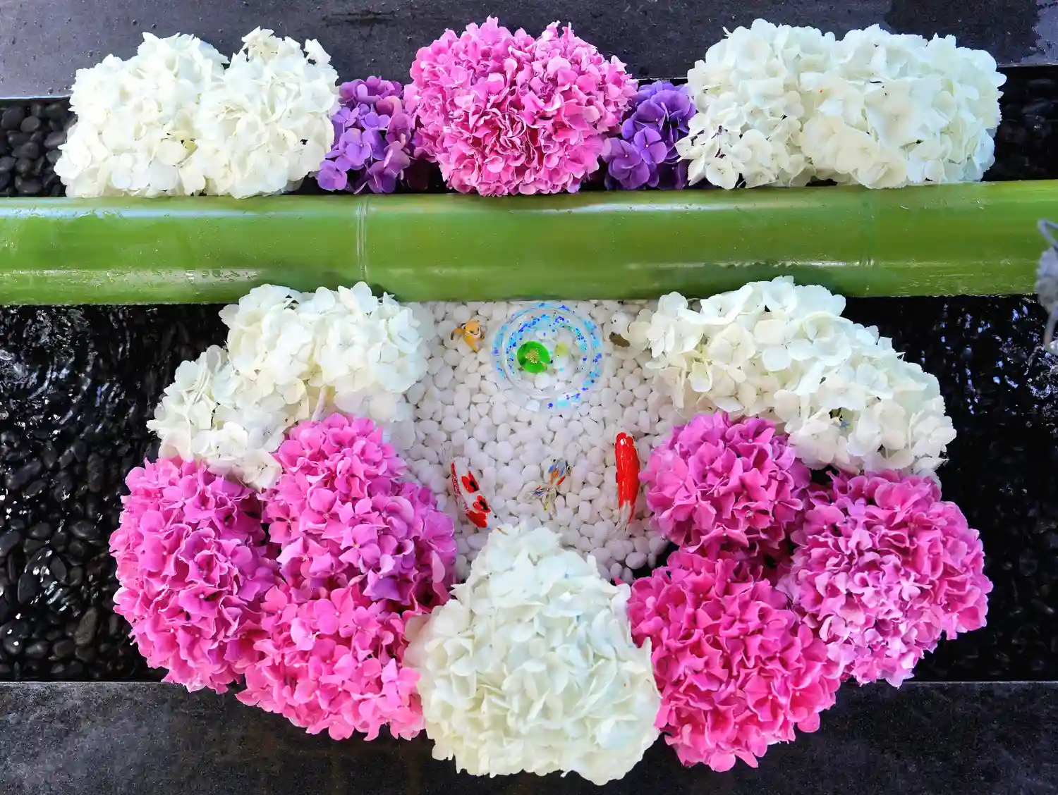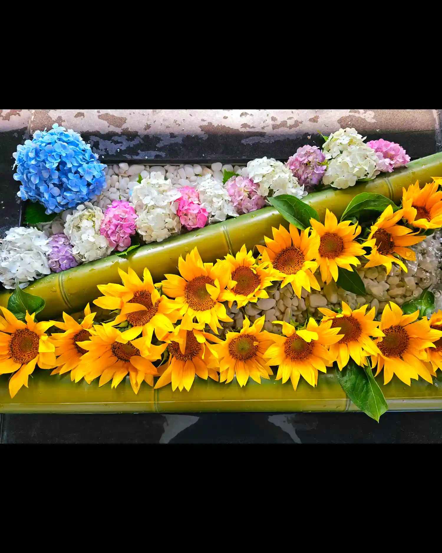 アジサイ一面の花手水となります🌸