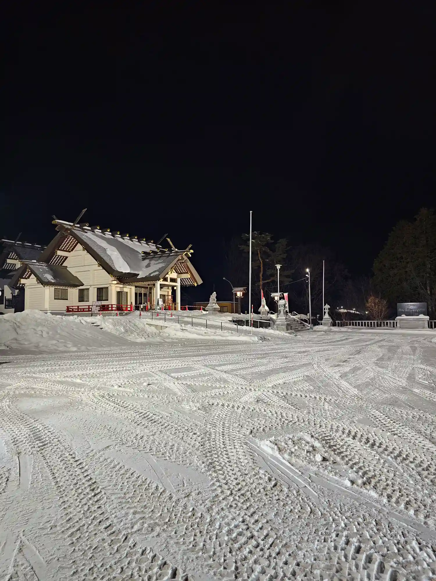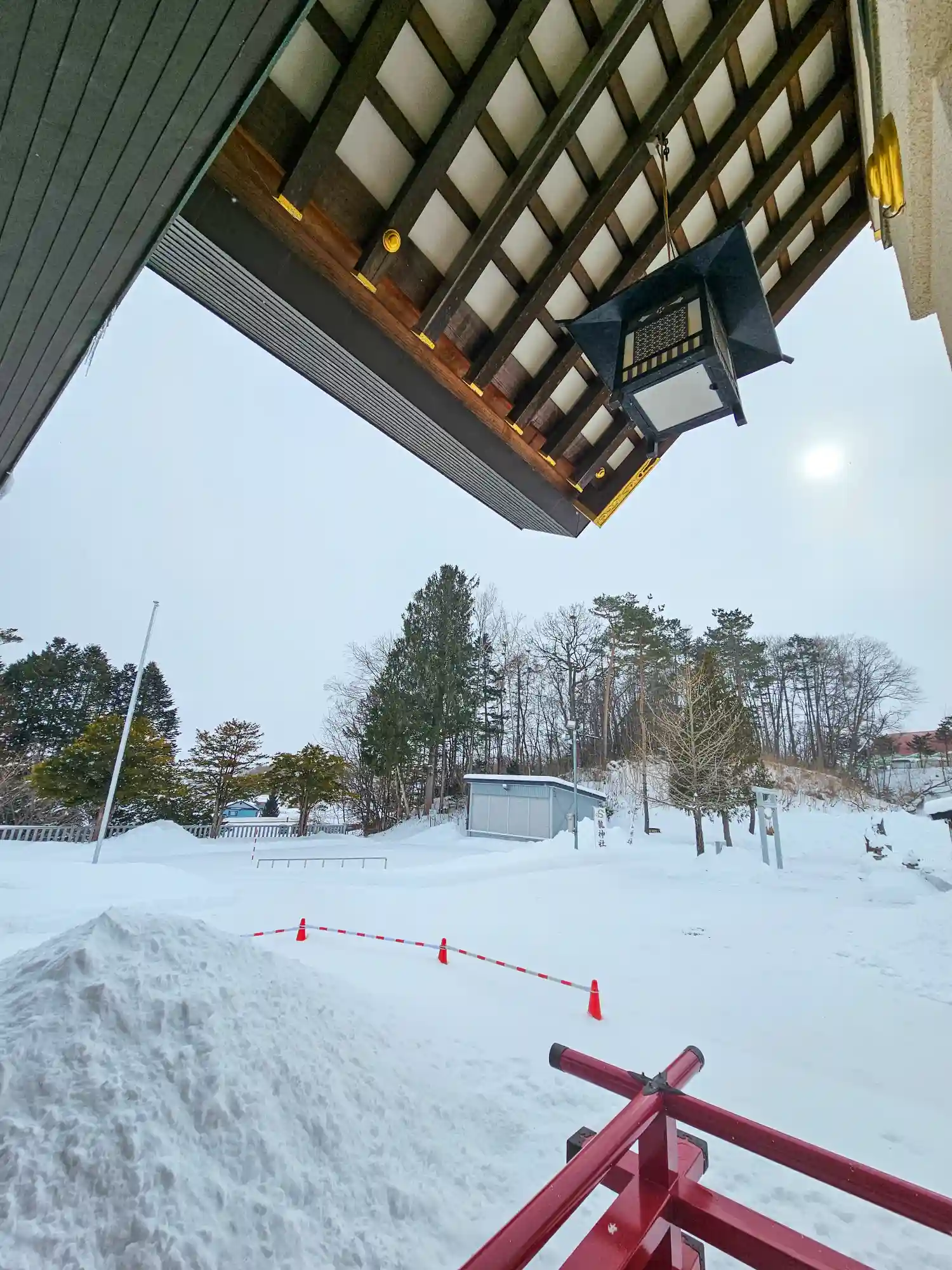 雪の中で狛犬もすごく寒そうでした。