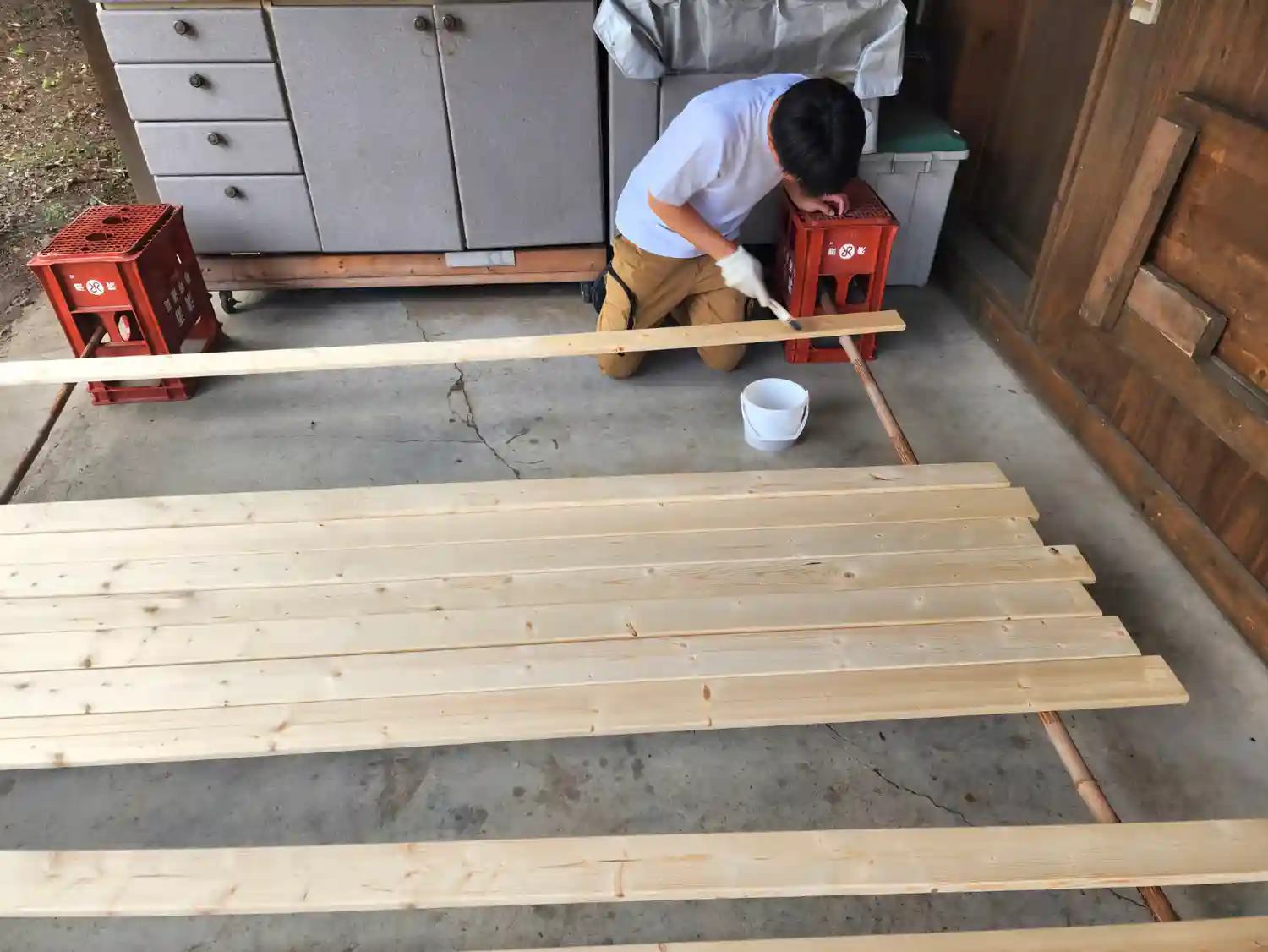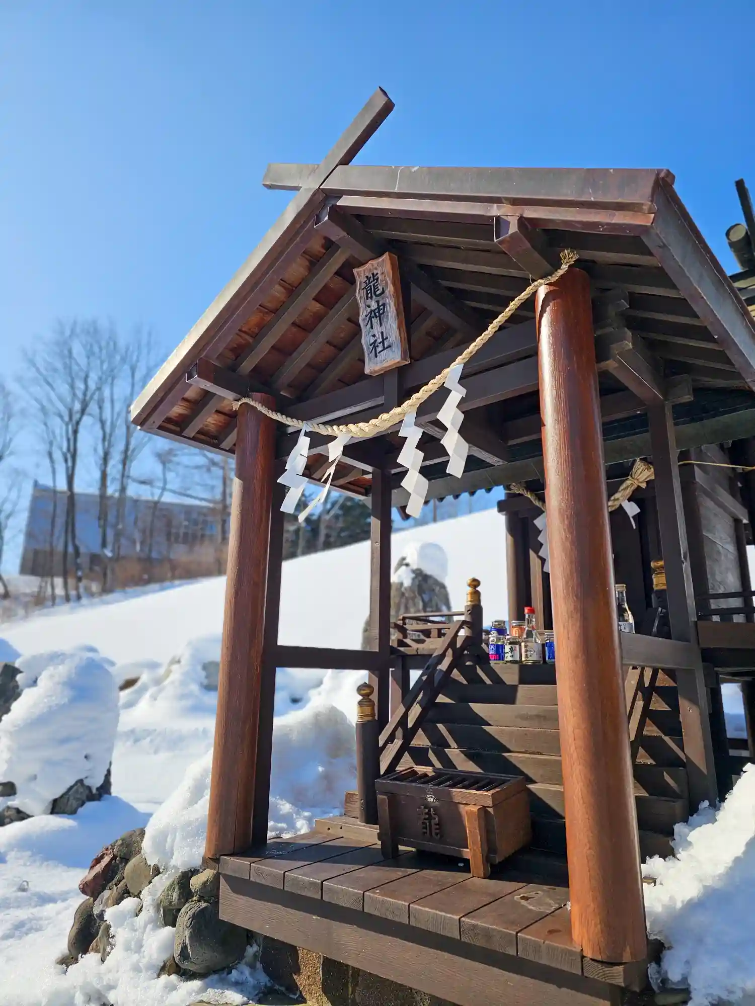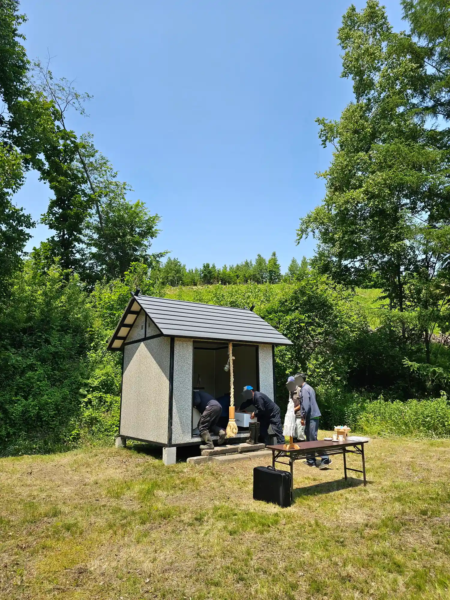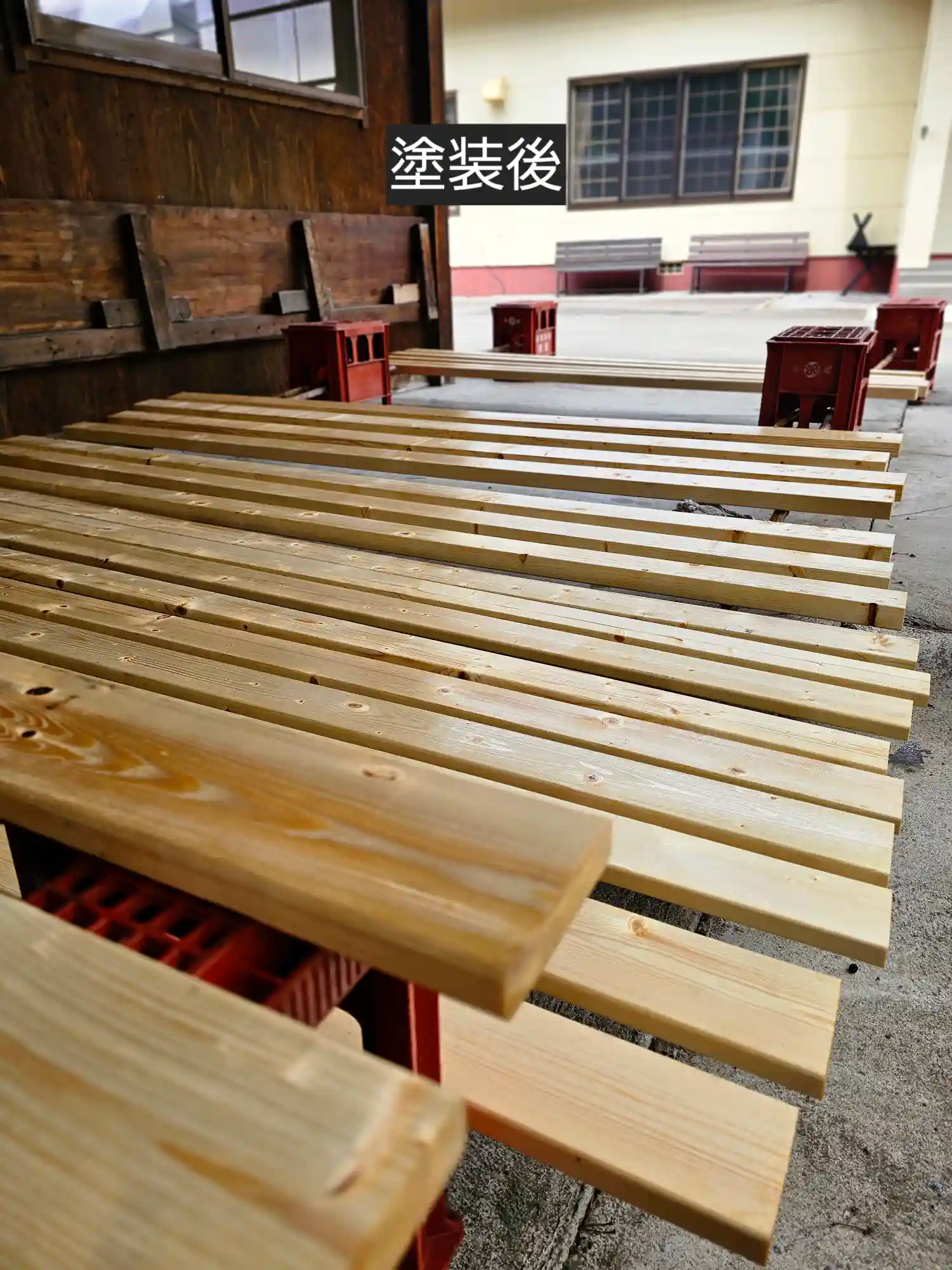 社殿前の案やおみくじの台を塗装しました☀️