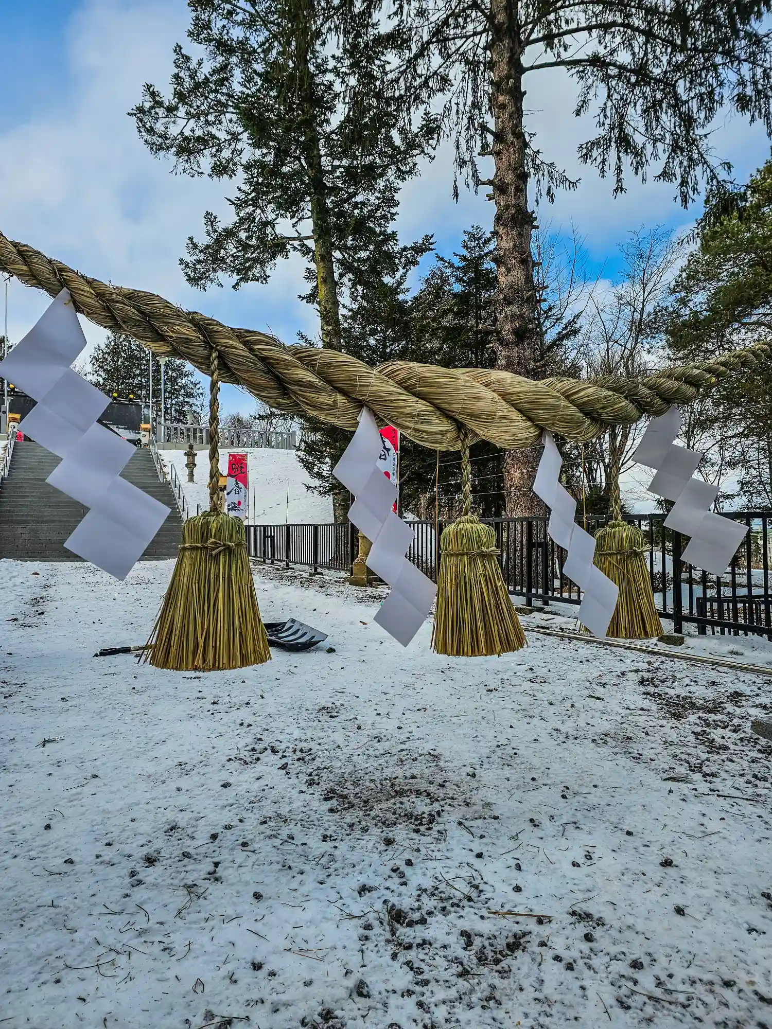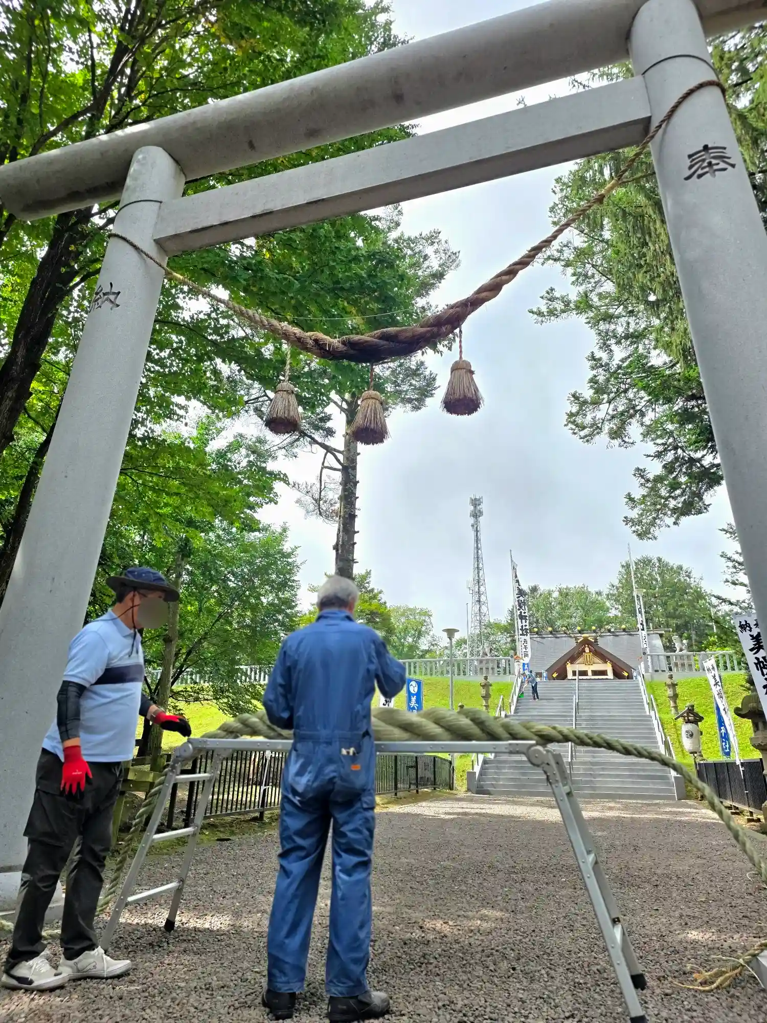 本日は参道に単管とロープの取り付け作業が行われました…
