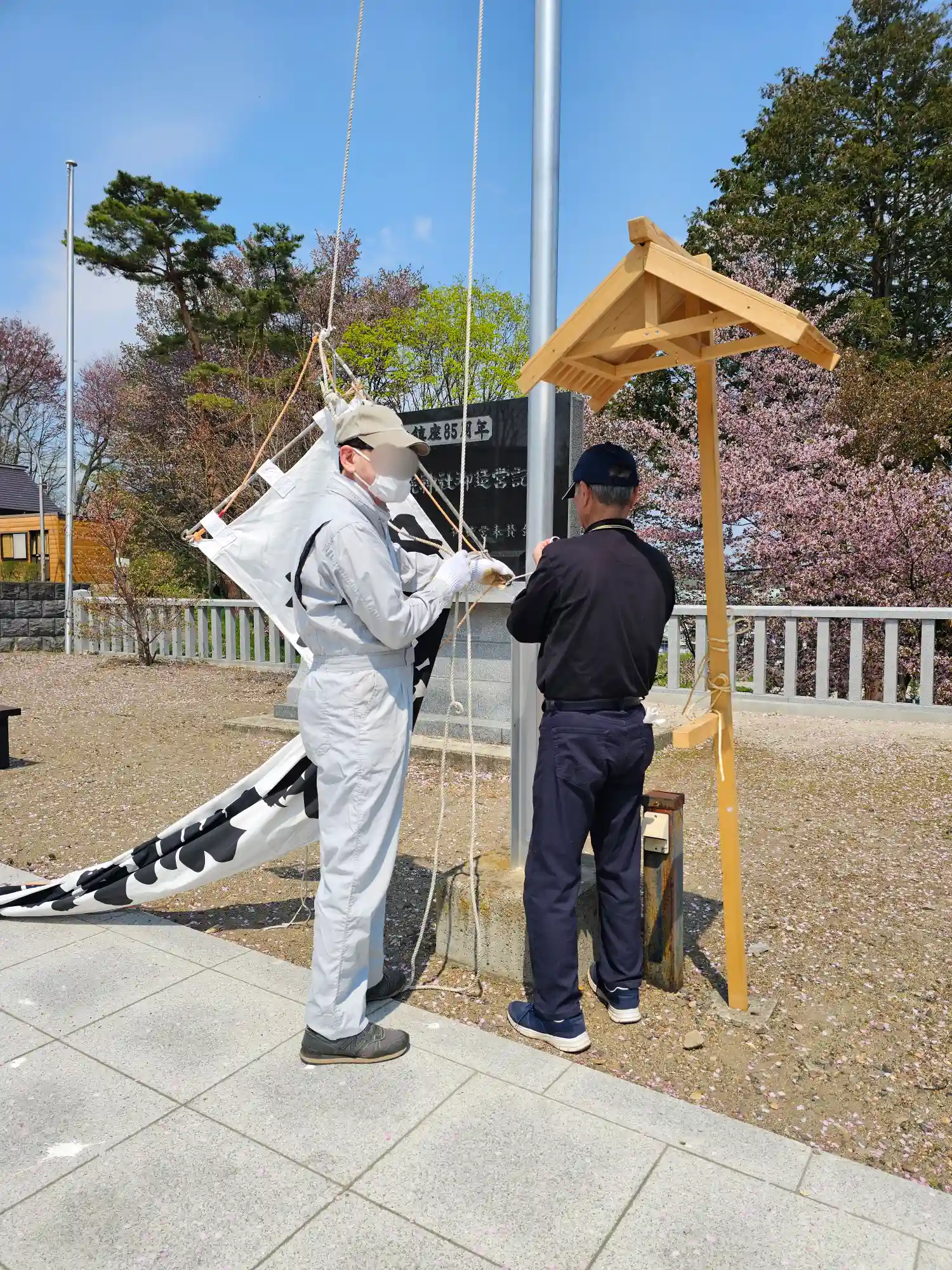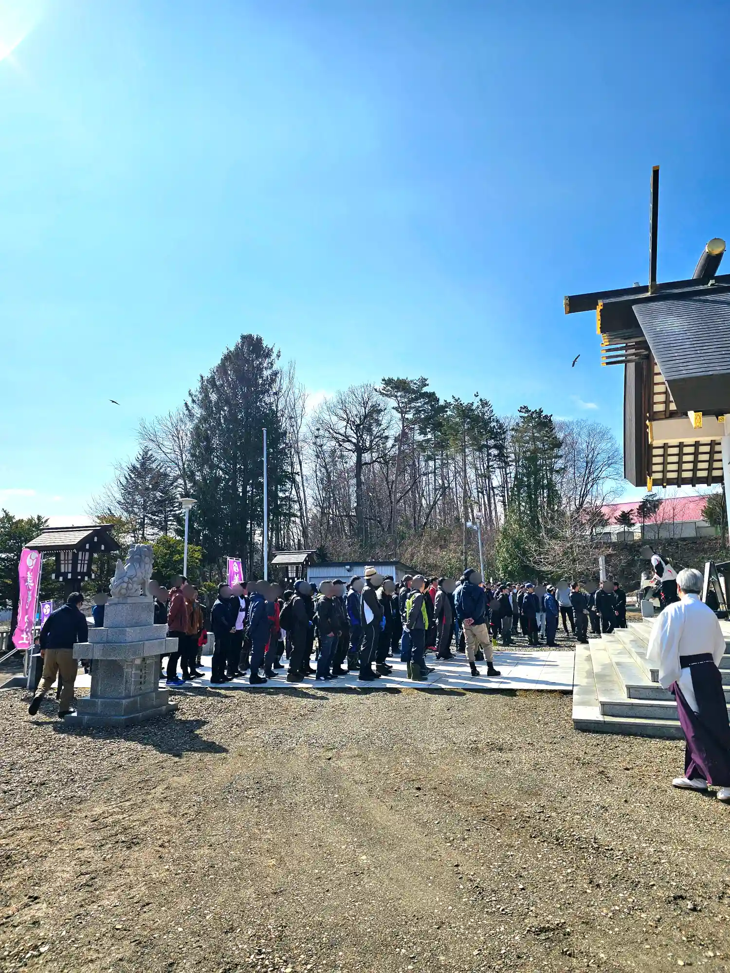 幟を交換した直後に、「龍神社の前で御祈祷して…