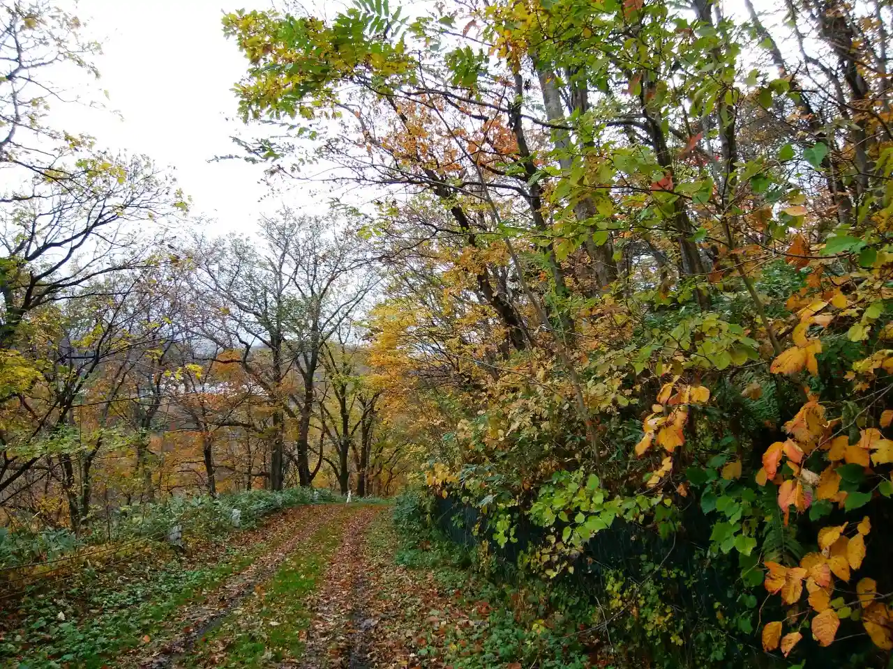 倒木の進路妨害と落葉のぬかるみ… 崖側に脱輪しないようにビクビクしながらUターンして帰りました😫