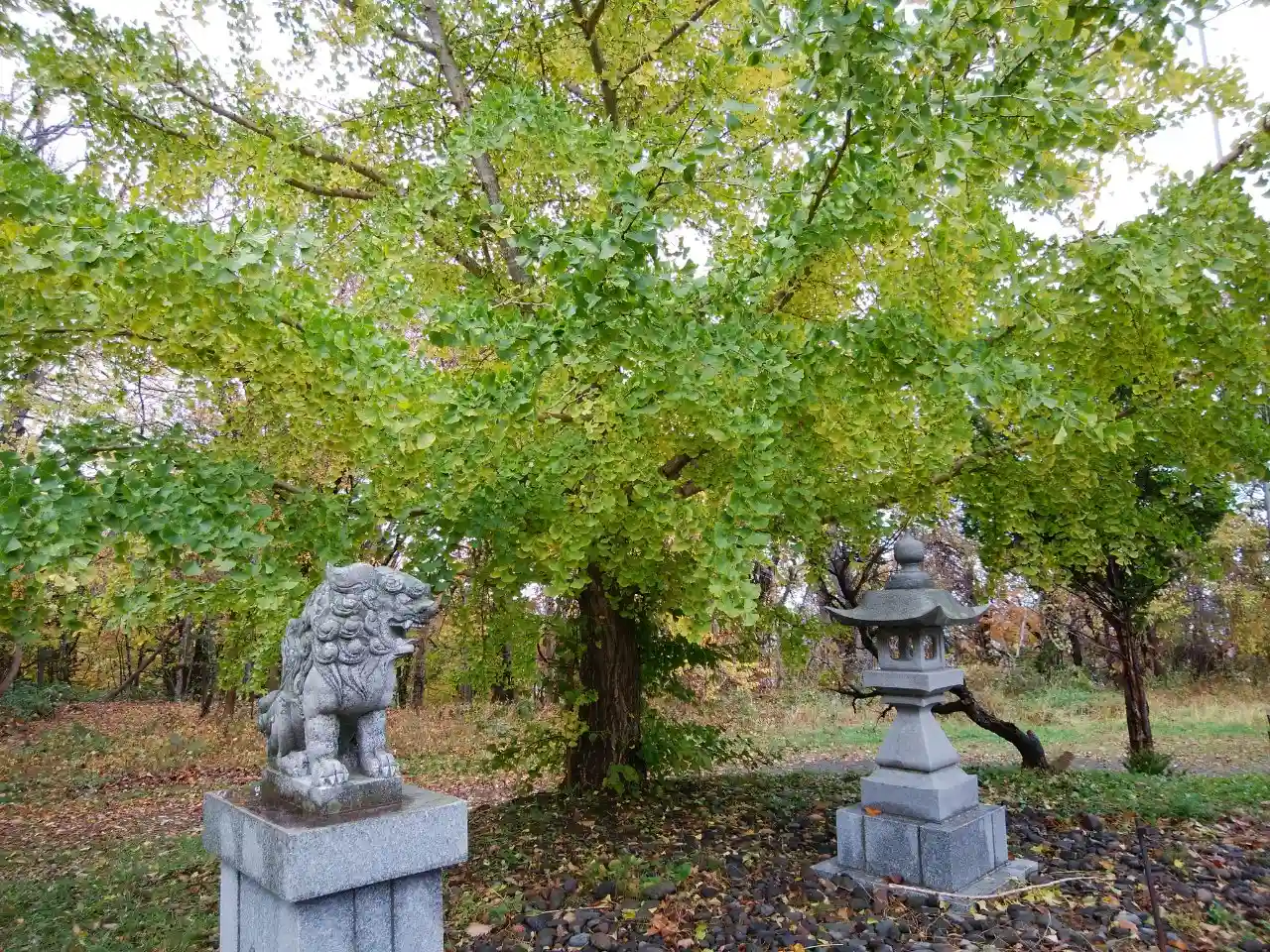大きなイチョウと狛犬さんが印象的でした😊