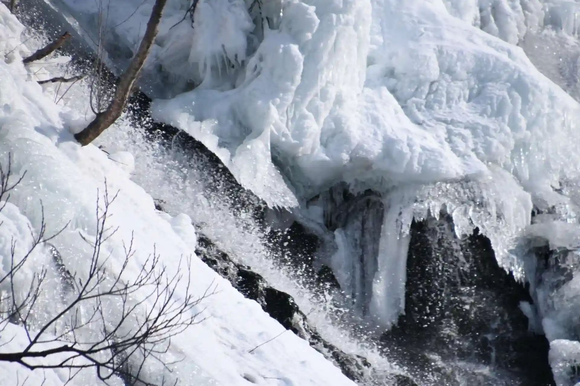 写真では凍っていて分かりにくいですが、流れが途中で二股に分かれていることから「双美の滝」とも呼ばれているそうです(※1,2)。