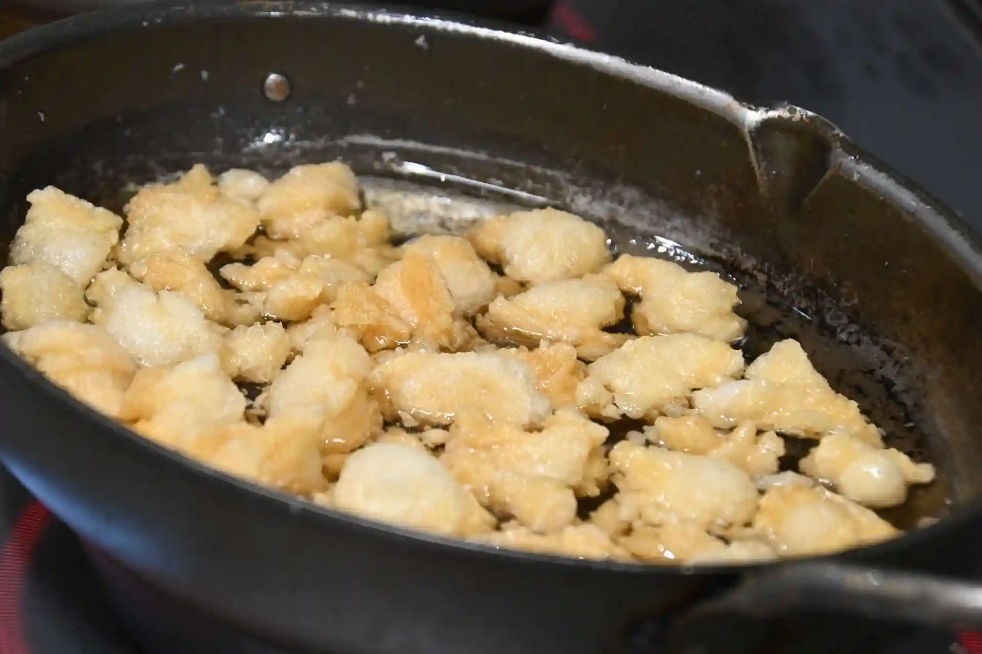 正月の間、お寺でお供えしていた鏡餅を油で揚げて塩をまぶしたものです。