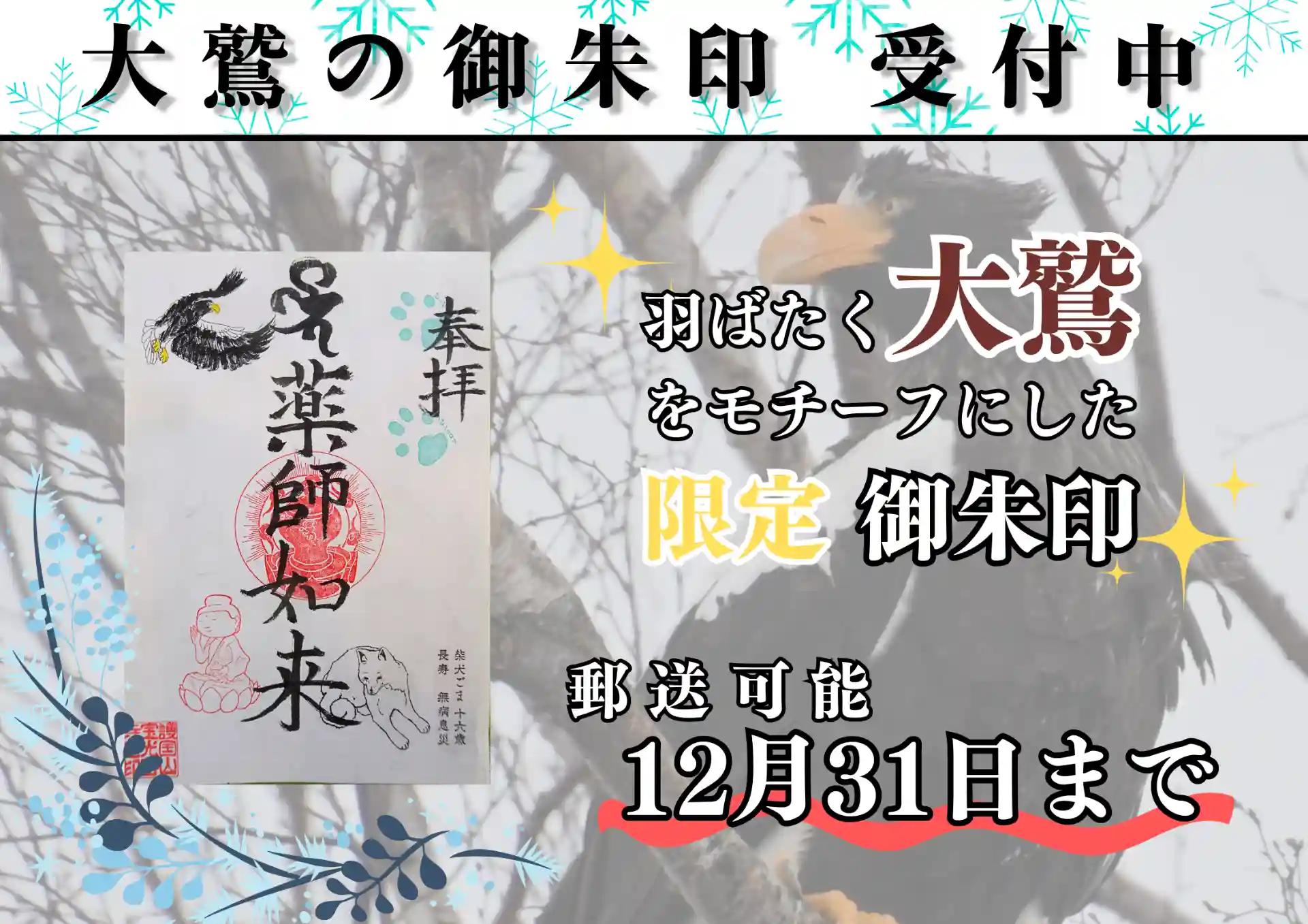 ○ 12月限定御朱印のお知らせ【オオワシの御朱印】【郵送可能】(12月31日まで)