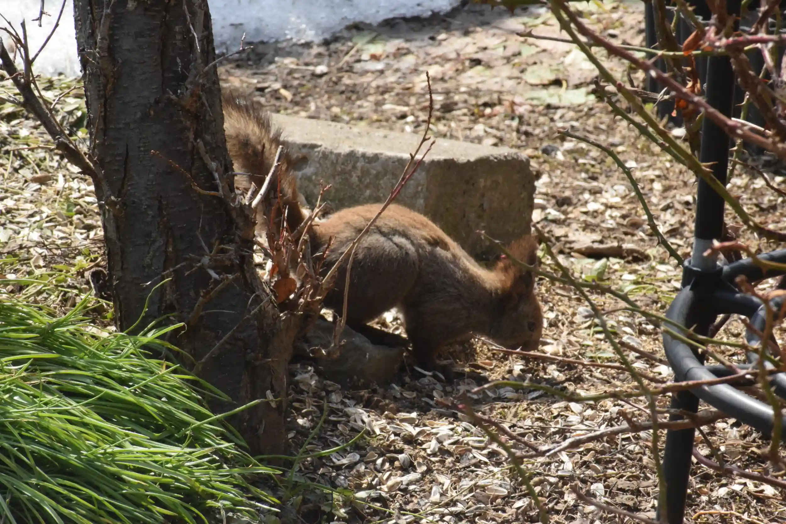 境内の裏庭にエゾリスが遊びに来ました🥰