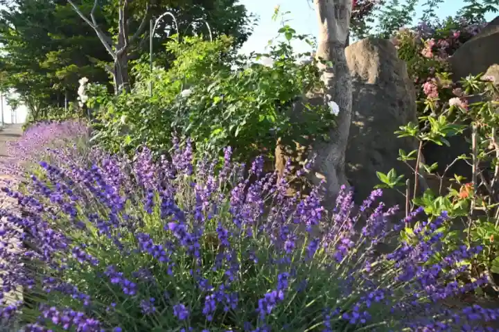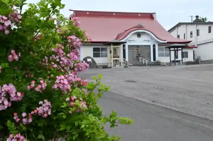 北海道の寺院では珍しく、境内でバラが咲いています。