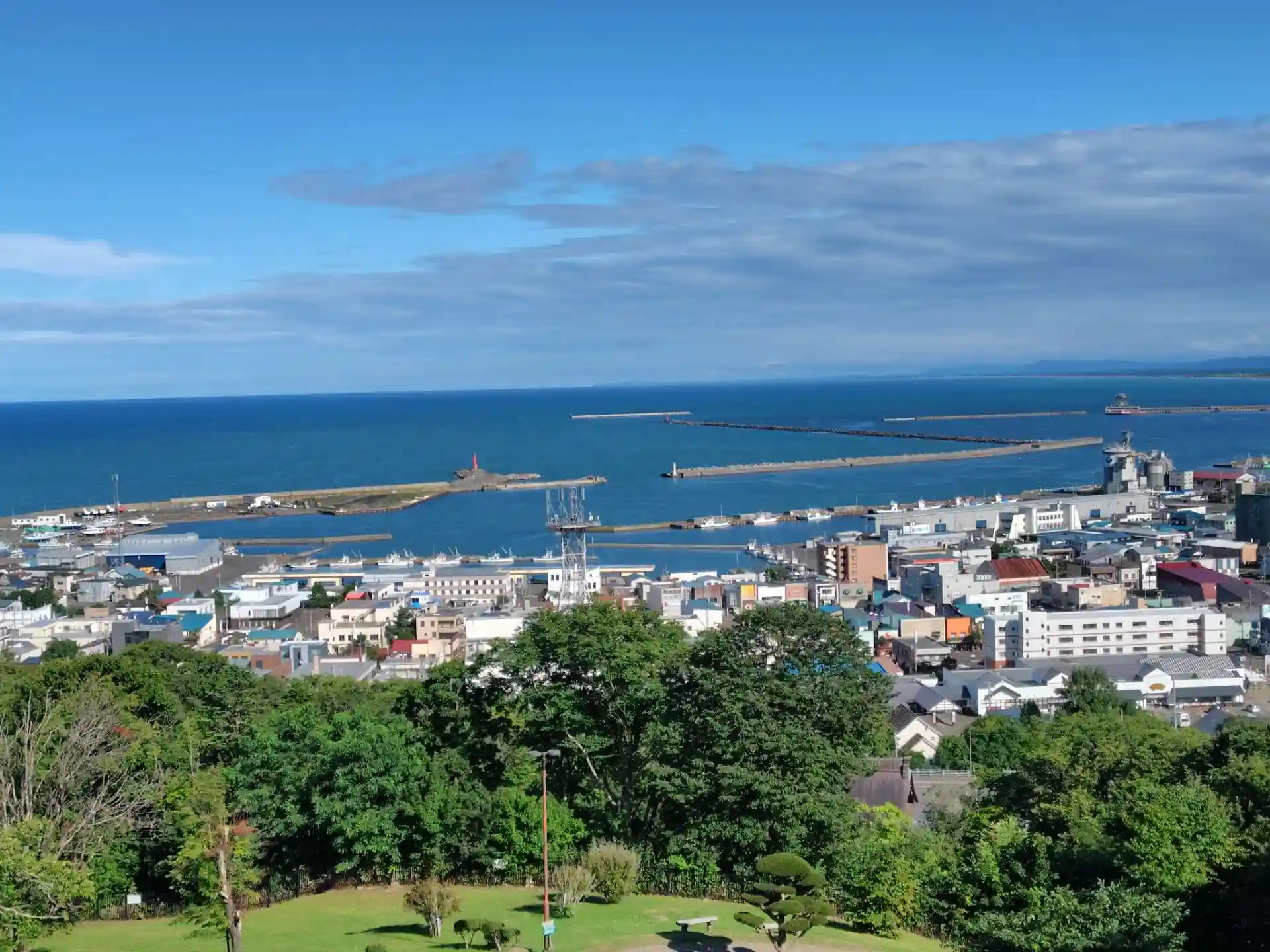 紋別公園からオホーツク海と港町の景色を眺めてゆっくりした後、お参りしました。宿はこの時期にしてリーズナブルで海側の角部屋。令和仕様に改装されていて快適。夕食はホタテ漬け丼、たこザンギ。地元出身の知人のお薦めの店で大成功でした。