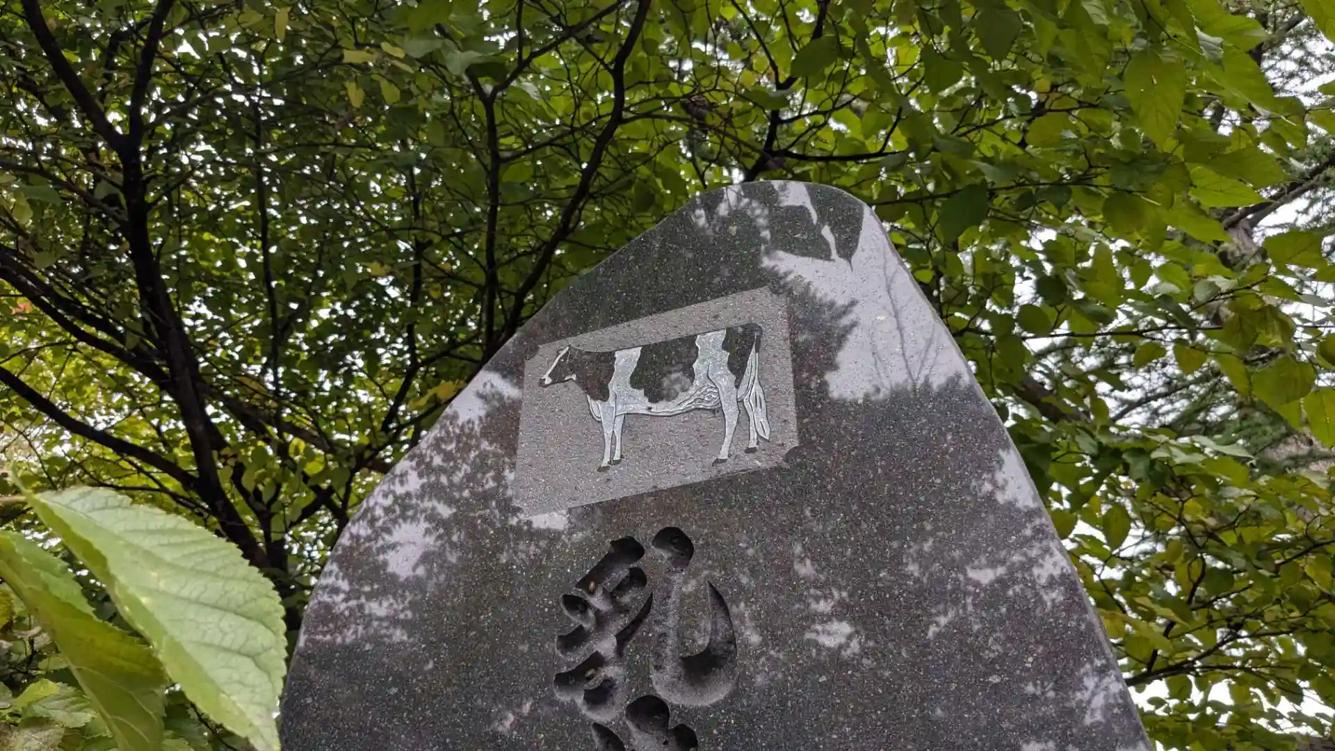 境内にはやすくに公園が作られていてホルスタインが描かれた乳牛感謝之碑が建てられています。他にも馬頭観音が建てられており昔から酪農が盛んな地域なのが伺えます。ここへ来る途中でも牧場の牛を見かけました。