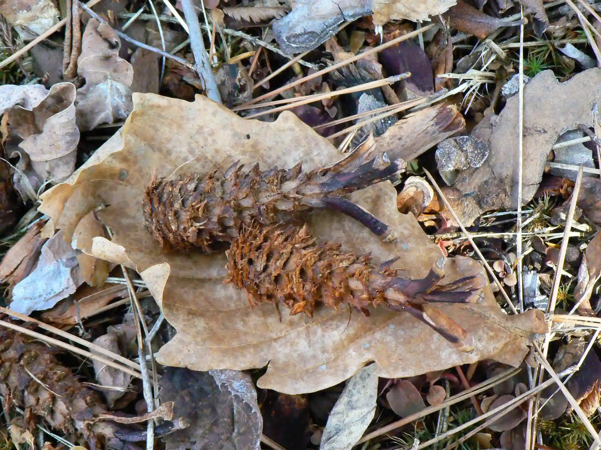 実はこれ、エゾリスたちが松ぼっくりの種を食べるために齧った跡なんですね。